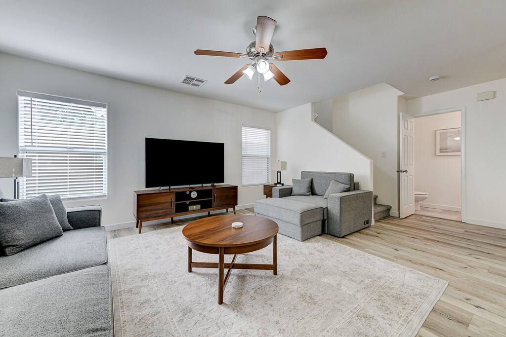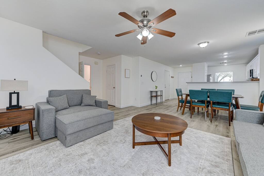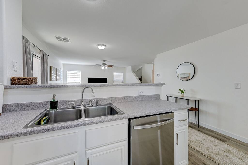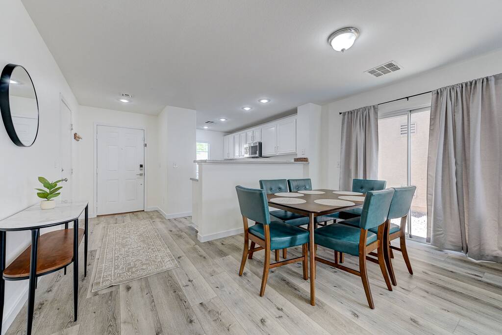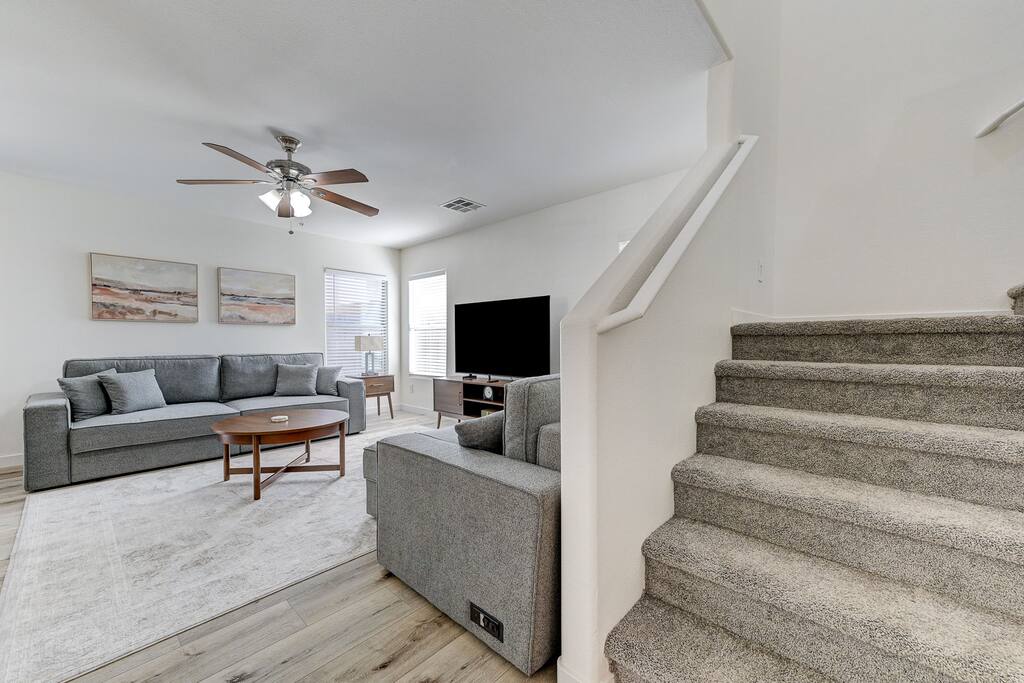 Enjoy a comfortable stay in this beautiful two-story home featuring: 🔹🛏️ 3 bedrooms upstairs 🔹🛌 2 sofa bed downstairs 🔹 65" TV in living room and 55" TVs in bedrooms with 250 free TV channels via PlutoTV and Samsung TV stations 🔹🚿 2.5 bathrooms 🔹🏡 Spacious living room for relaxation 🔹🍽️ Fully equipped kitchen with stainless steel appliances and basic kitchen essentials 🔹 🏘 Quiet neighborhood with community park ♥️ Perfect for families, groups, or business travelers looking for a cozy and convenient stay! Conveniently near the Las Vegas strip (10 min drive), walking distance to grocery stores, and restaurants. Walking distance to "The Uncommons" restaurant district. Near Ikea and Durango Casino.