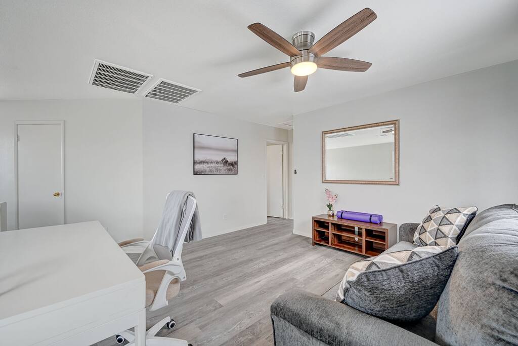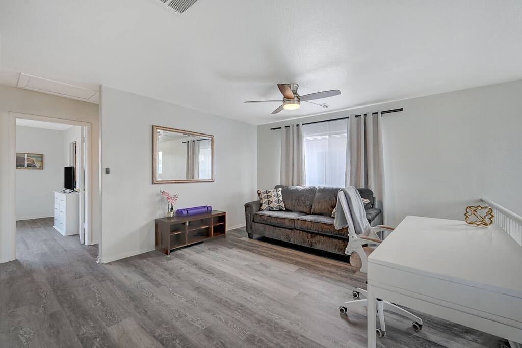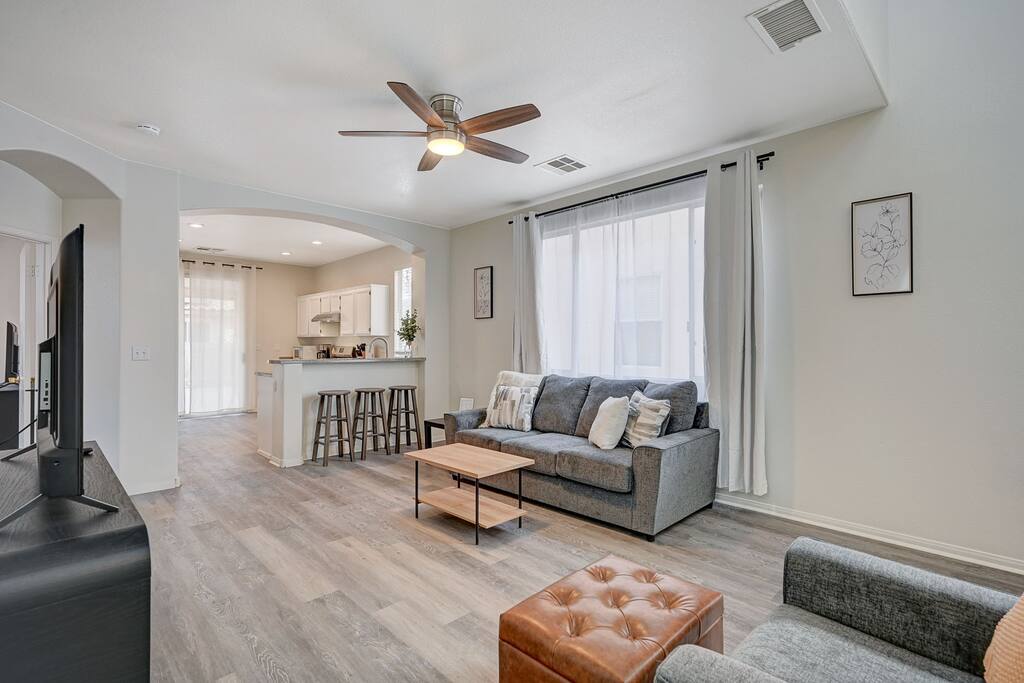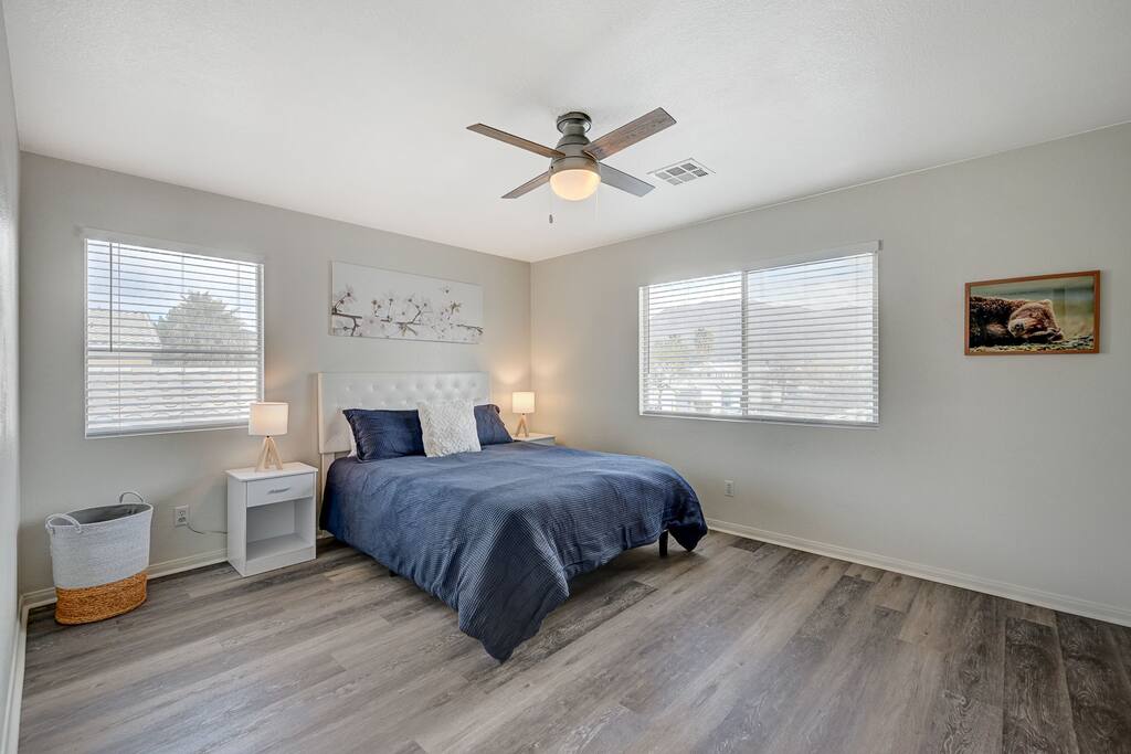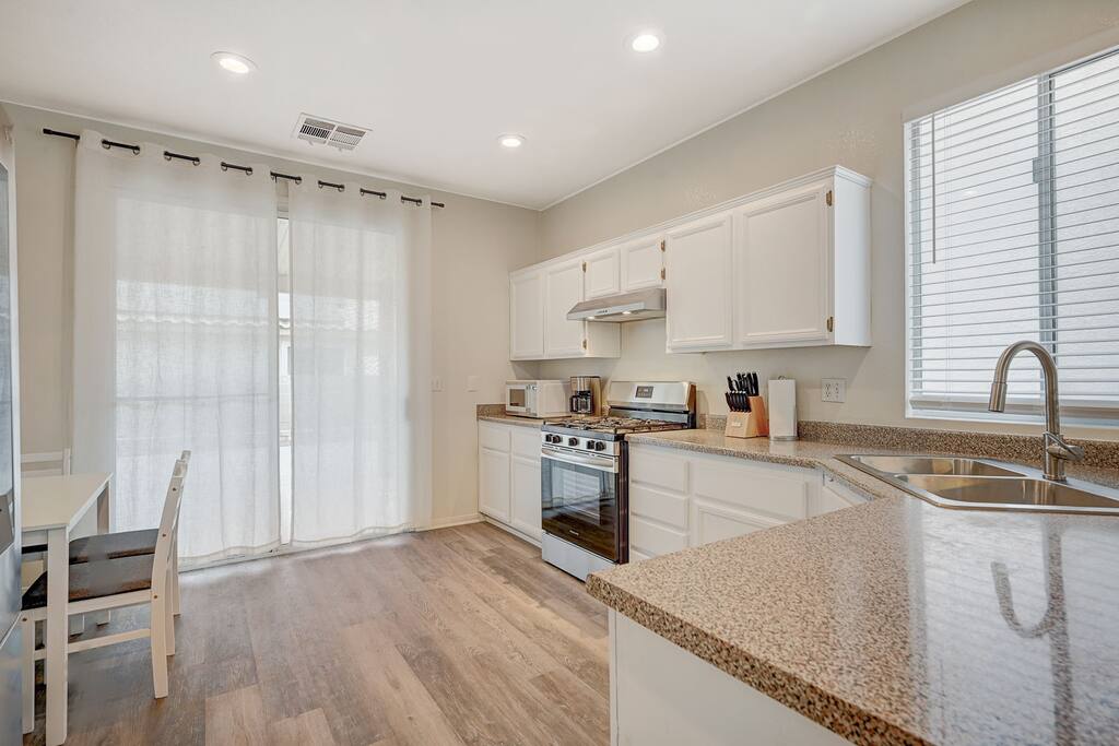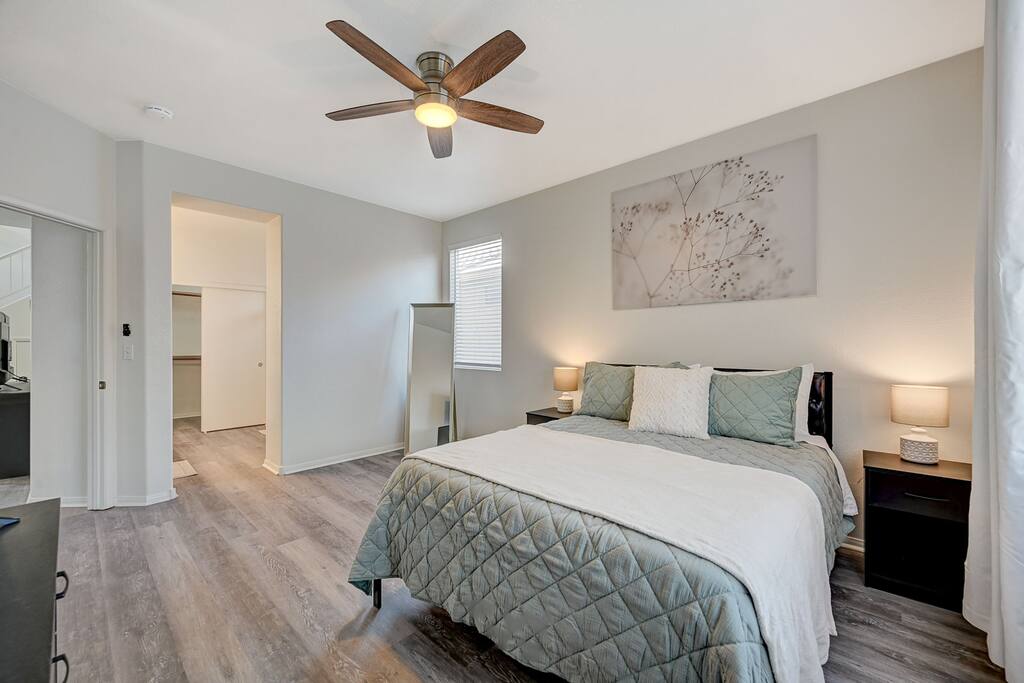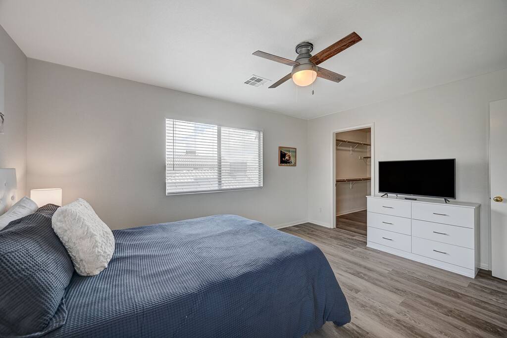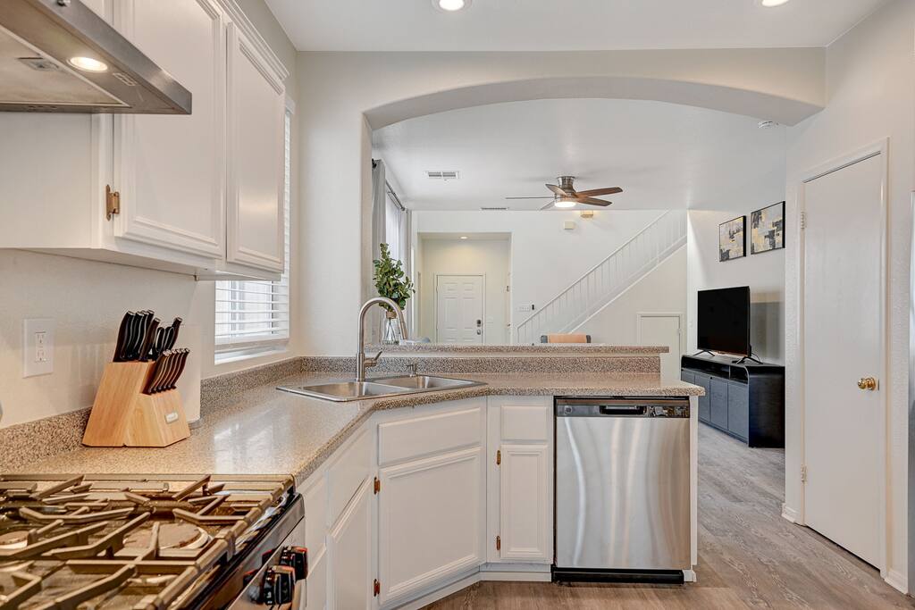 Enjoy a comfortable stay in this beautiful two-story home featuring: 🔹🛏️ 2 bedrooms upstairs + versatile loft with sofa bed 🔹🛌 1 bedroom downstairs with connected bathroom 🔹🚿 2.5 bathrooms 🔹🏡 Spacious living room for relaxation 🔹🍽️ Fully equipped kitchen with stainless steel appliances and basic kitchen essentials 🔹Counter bar seating with 3 bar stools 🔹🚗 Oversized driveway with ample parking 🔹🌿 Covered patio and backyard space for outdoor enjoyment ♥️ Perfect for families, groups, or business travelers looking for a cozy and convenient stay! Conveniently near the Las Vegas strip, grocery stores, and restaurants.