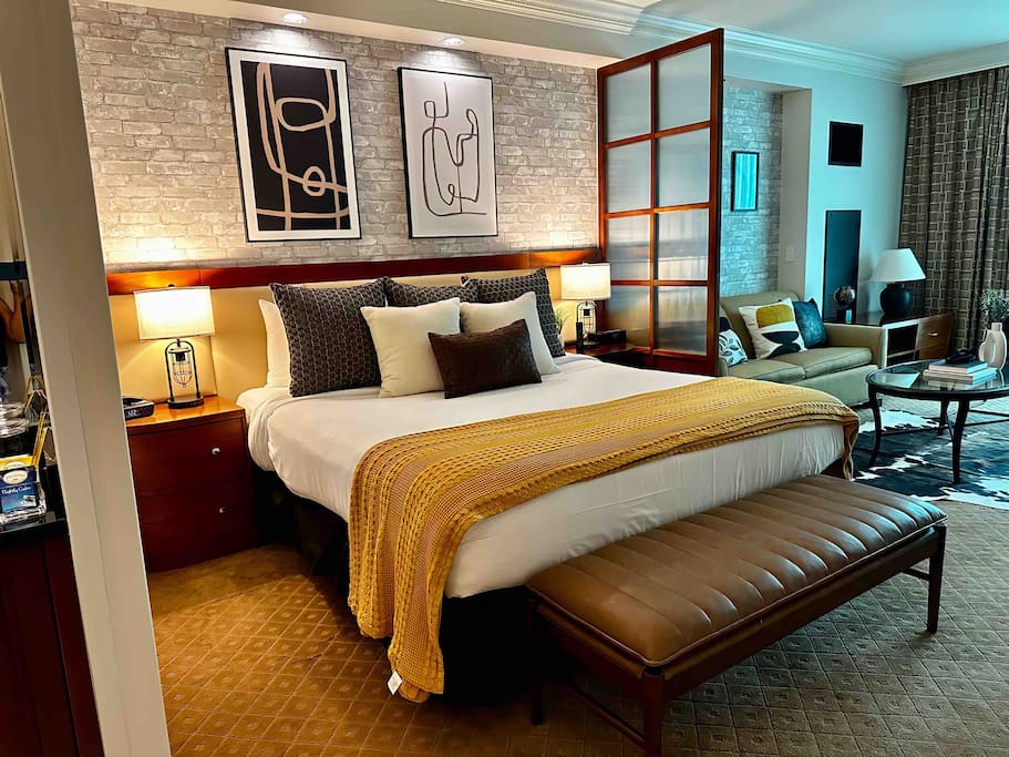 ♥️ BOOK AN EXPERIENCE ~ HIGH floor premium studio suite with a balcony offering panoramic views of the LV Strip and formula 1 race track located at the MGM Signature Tower 2. Showcasing a modern industrial design using a blend of textures, metals, and soft hues reflect sleek and stylish decor. It emphasizes clean lines, utility, and simple furnishings that are functional, beautiful, and cozy. NO Daily resort fee. FREE WIFI and Valet parking.