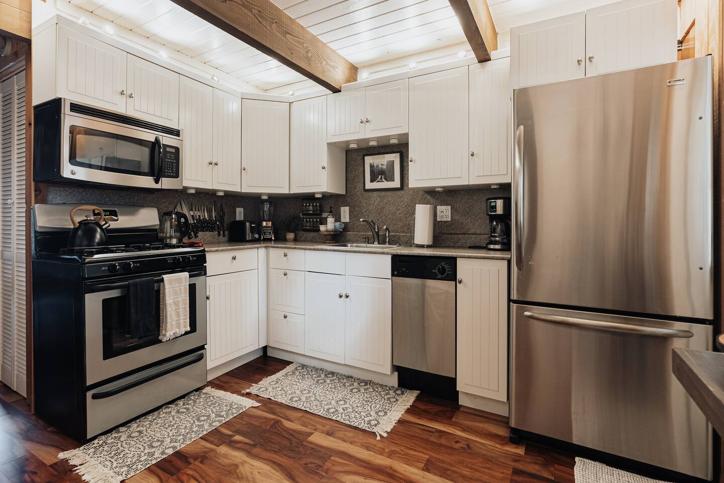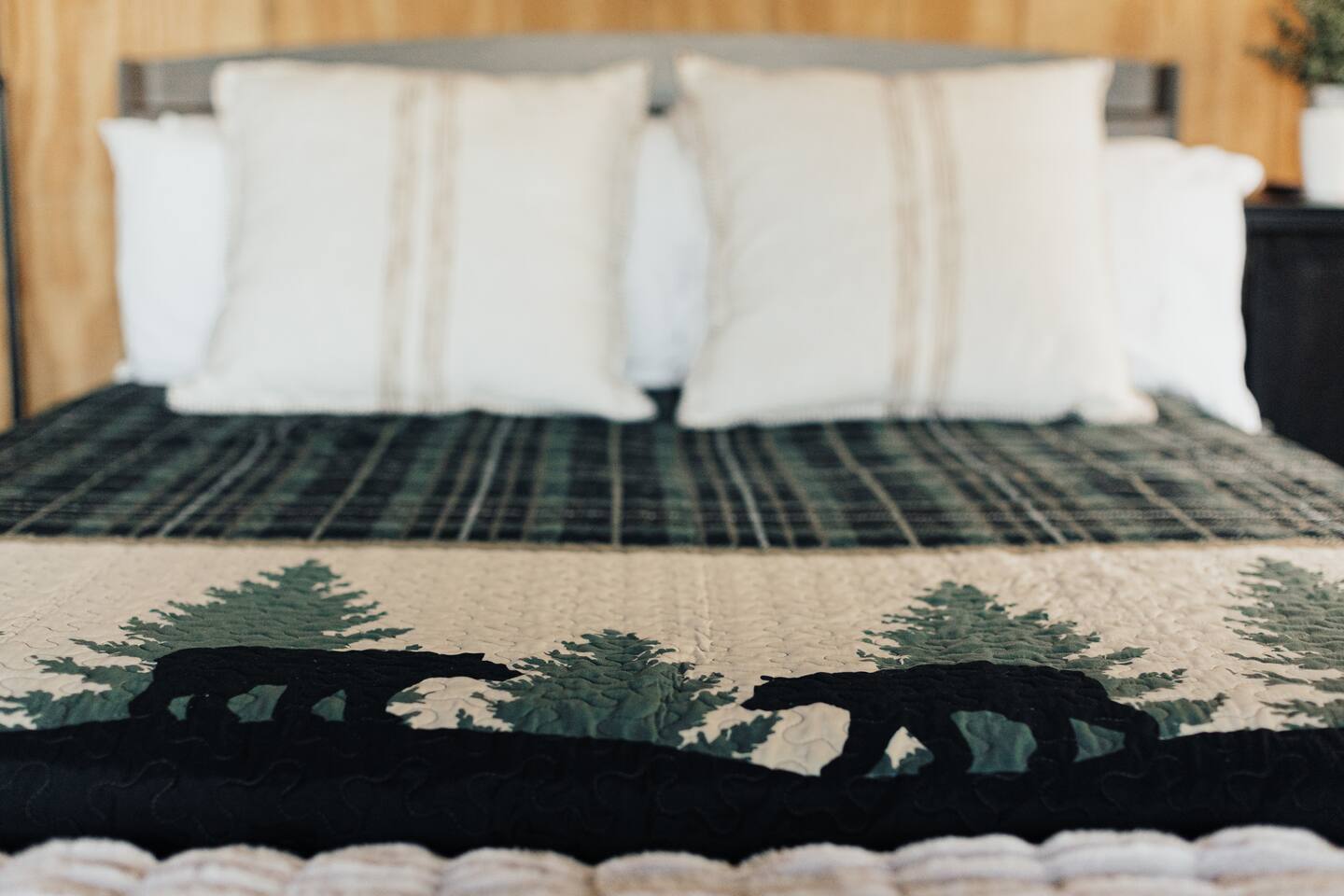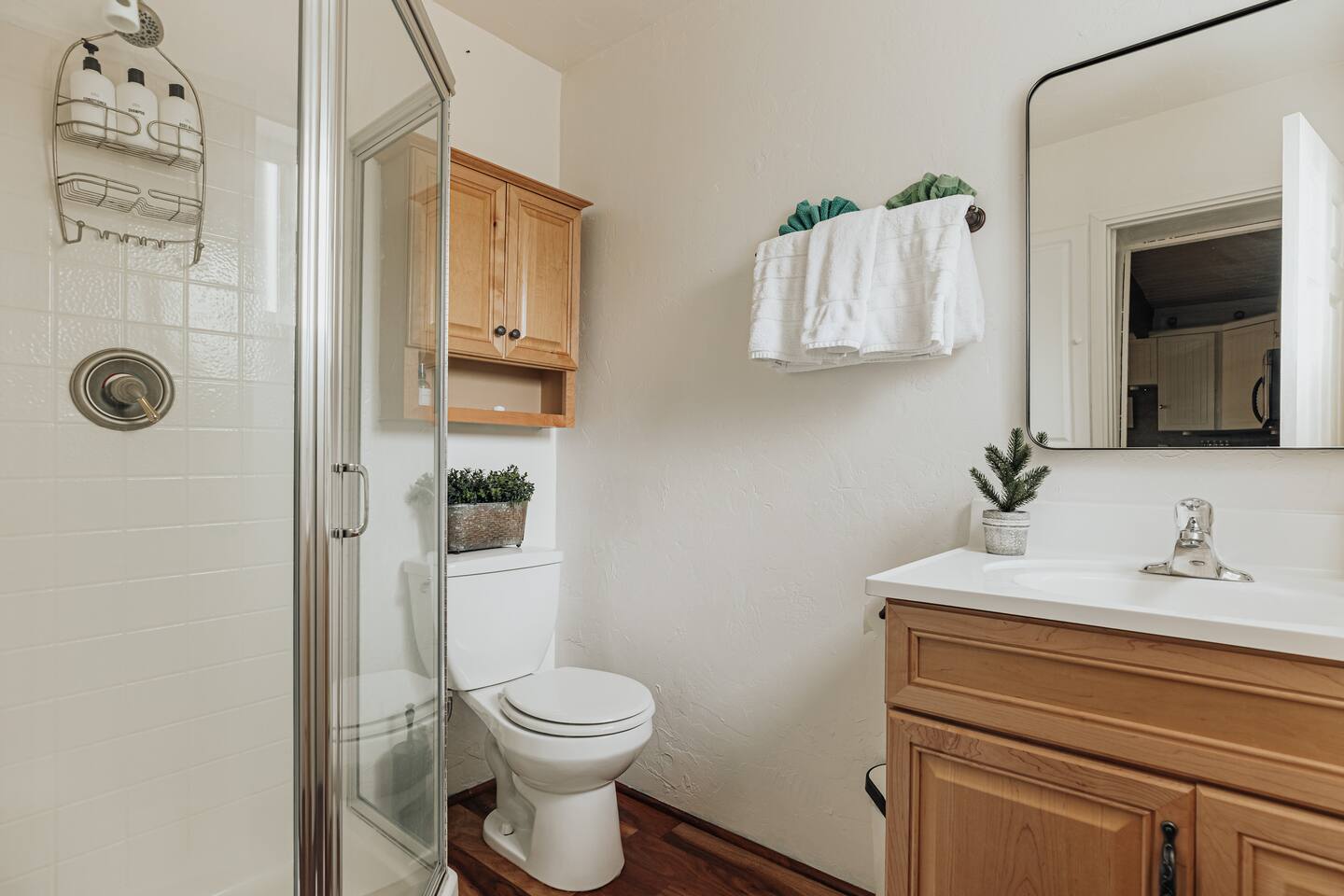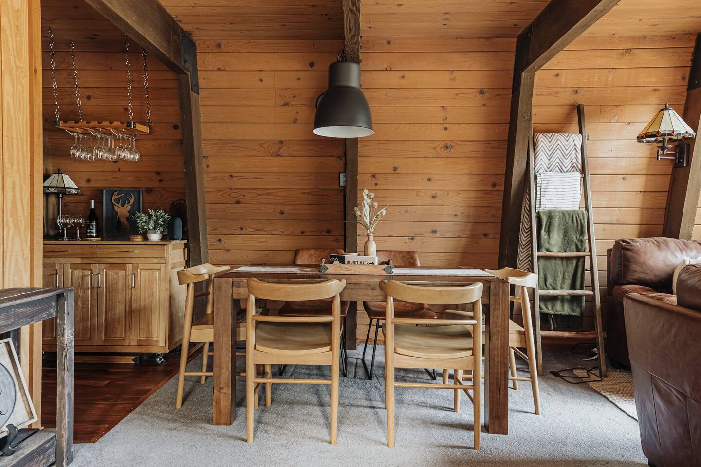 Maximum 6 person occupany only. Elk Run cabin is a stunning Gambrel which is thoughtfully designed to give a modern and rustin charm while maintaining the cozy cabin vibe. A sprawling living area with 65" flat screen smart tv, plush carpet, and wood burning fireplace. The kitchen has stainless steel appliances, a fully equipped coffee and cocoa bar, and plenty of cooking essentials. The sleeping areas include 2 bedrooms with queen sized beds, a sofa, and a pull out couch. Plenty of extra blankets and pillows. There are 2 bathrooms. One standing shower and one with a jetted tub. Brand new tankless water heater has been installed just a year ago. Rest assured, you will never run out of hot water. Fully fenced backyard and wrap around deck. You will find youself in a state of relaxation in our balcony with the most amazing lake and mountain views. Covered parking structure and massive driveway big enough to fit 2 vehicles. **Strictly no side street parking ** Central heating and portable heaters available ** No AC. We encourage you to open the windows and utilize the portable fans provided during the hot summer months Please be aware of San Bernadino's short term rental restrictions before booking. Quiet hours are from 10pm - 8 am. No outdoor bbq and loud music during quiet hours
