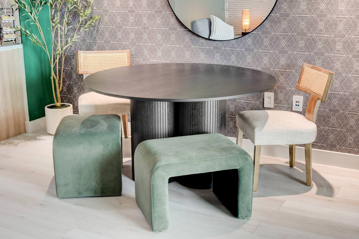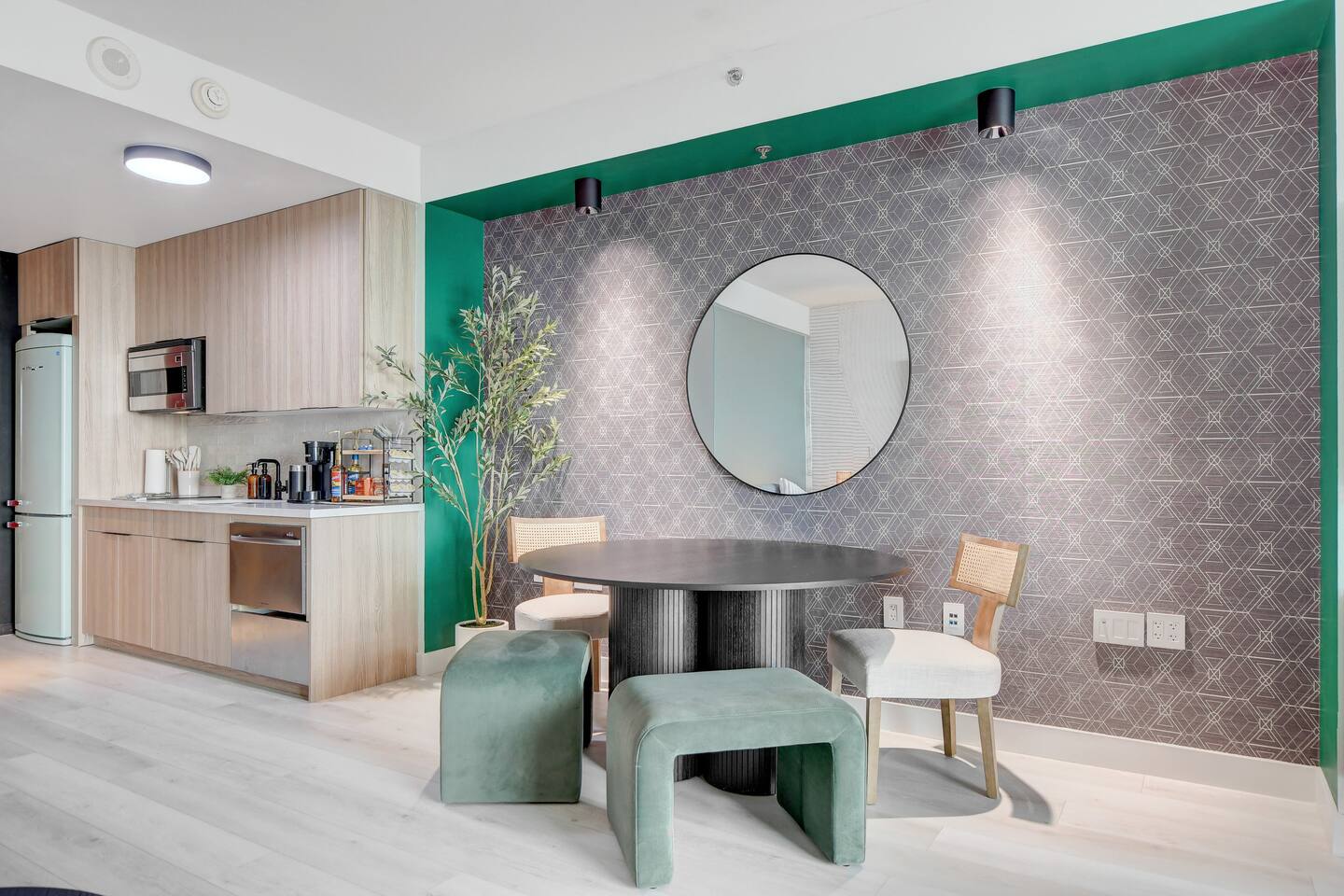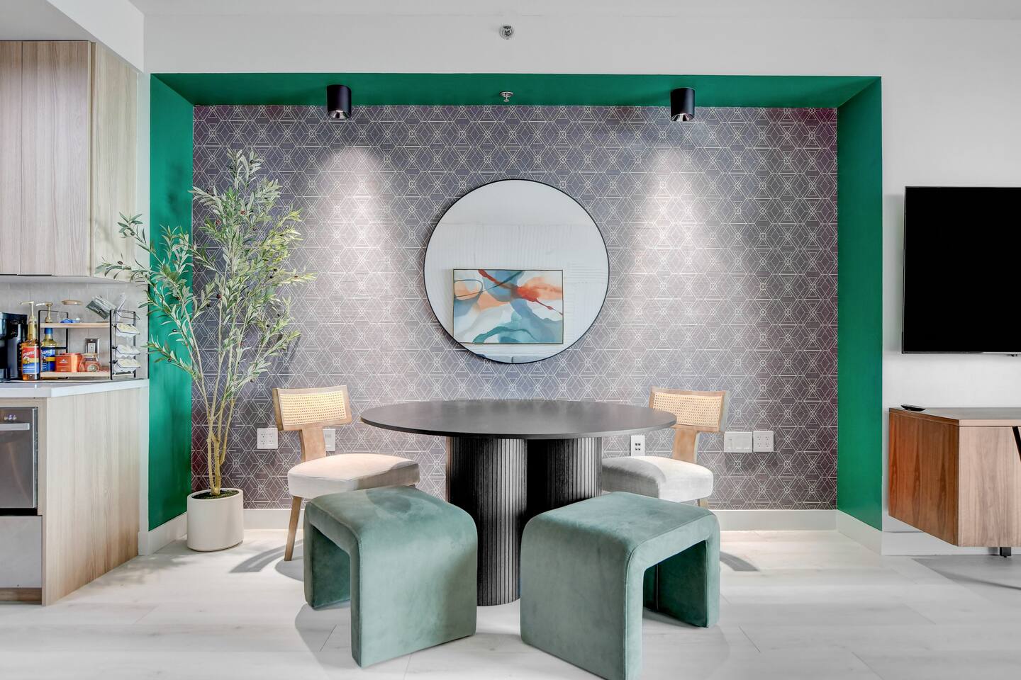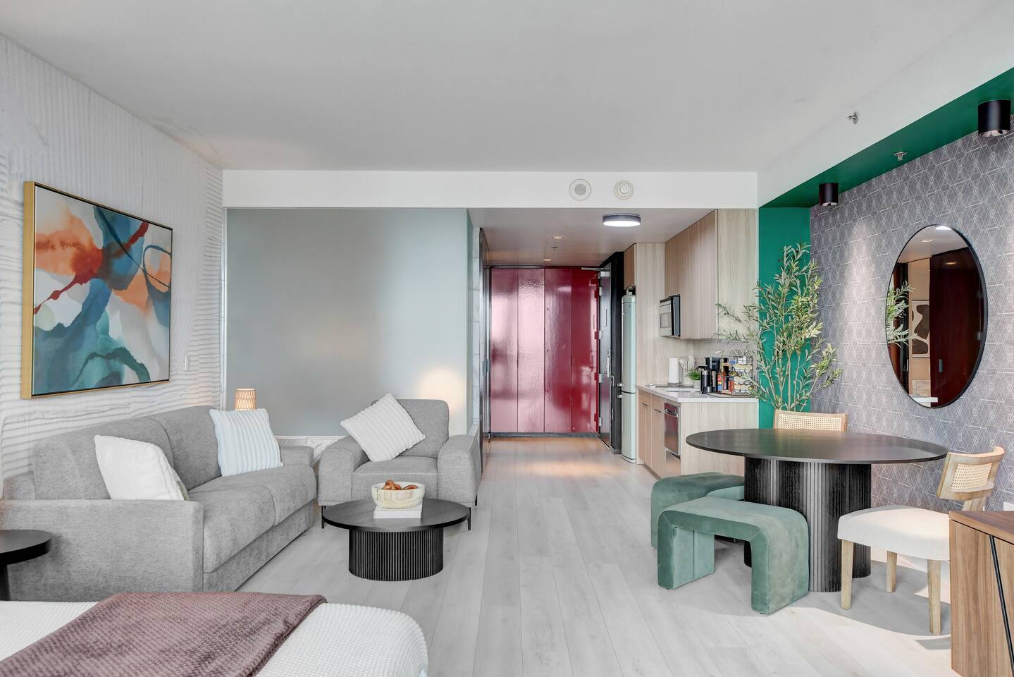 ✨Welcome to our privately owned timeless and stunning FULLY remodeled 615 sq foot high-rise condo at Palms Place. Enjoy stunning panoramic views of the iconic Strip and mountain views from your private balcony. Immerse yourself in modern comfort with brand new sleek furnishings, a fully equipped kitchenette, designated dining area, and access to exclusive building amenities. Whether you're here for the nightlife or a relaxing getaway, this stylish oasis is your perfect retreat at the Palms Place hotel resort. Inside, you'll find a well-appointed kitchenette, perfect for whipping up a quick meal or snack. The shower and indulgent jetted tub provide a spa-like experience, allowing you to unwind and relax after a day of exploring. You'll have easy access to world-class entertainment, dining, and shopping options. Whether you're here for a weekend getaway or an extended stay, this condo offers a comfortable retreat in the midst of all the excitement. ✅ Amenities include but not limited to: Bedroom area: 🔹King size bed with a plush memory foam 🔹luxury mattress with 2 nightstands 🔹65" flat screen smart tv with streaming capabilities 🔹Dresser 🔹Area rug Living area: 🔹Queen size sofa bed in the living room Coffee table 🔹2 end tables with lamps 🔹Comfortable accent chair Kitchen: 🔹Fully stocked kitchenette 🔹Retro full size refrigerator with bottle holder and chiller 🔹Stainless steel dishwasher and microwave 🔹Toaster 🔹2 electric burner stovetop 🔹Blender 🔹Keurig coffee maker 🔹Variety K-cups and hot tea 🔹Dinnerware and utensils 🔹Pots and pans 🔹Cutting board Dining area: 🔹55" dining table 🔹2 dining chairs 🔹2 ottomans 🔹Coffee table Bathroom: 🔹Separate shower 🔹Full size bathtub 🔶Other: Digital safe Iron and Ironing board. High-speed Internet access with wireless capabilities. 📣 Per Palms Place policy, there are only four guests maximum in the studio suite. Strictly no pets allowed.