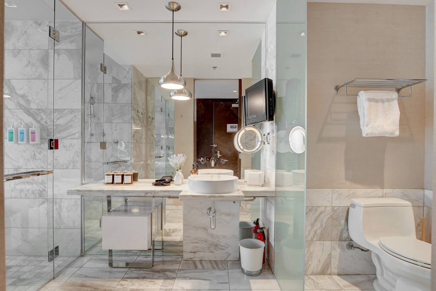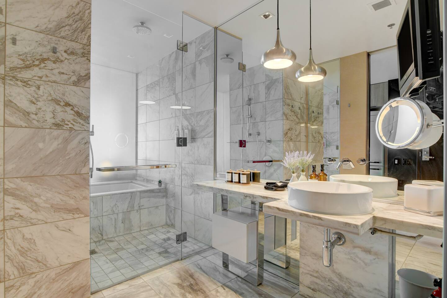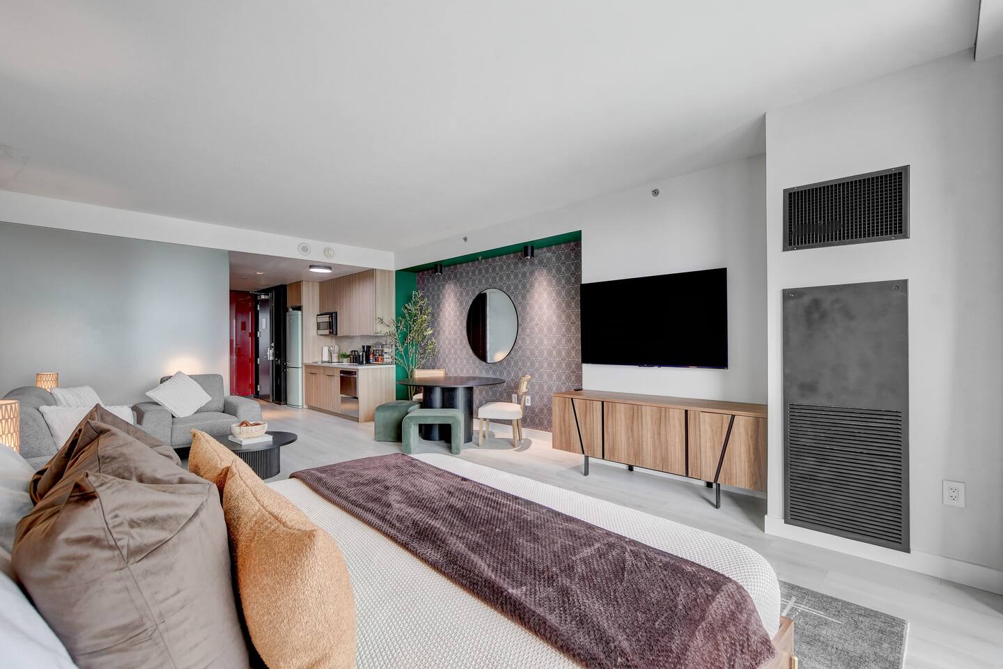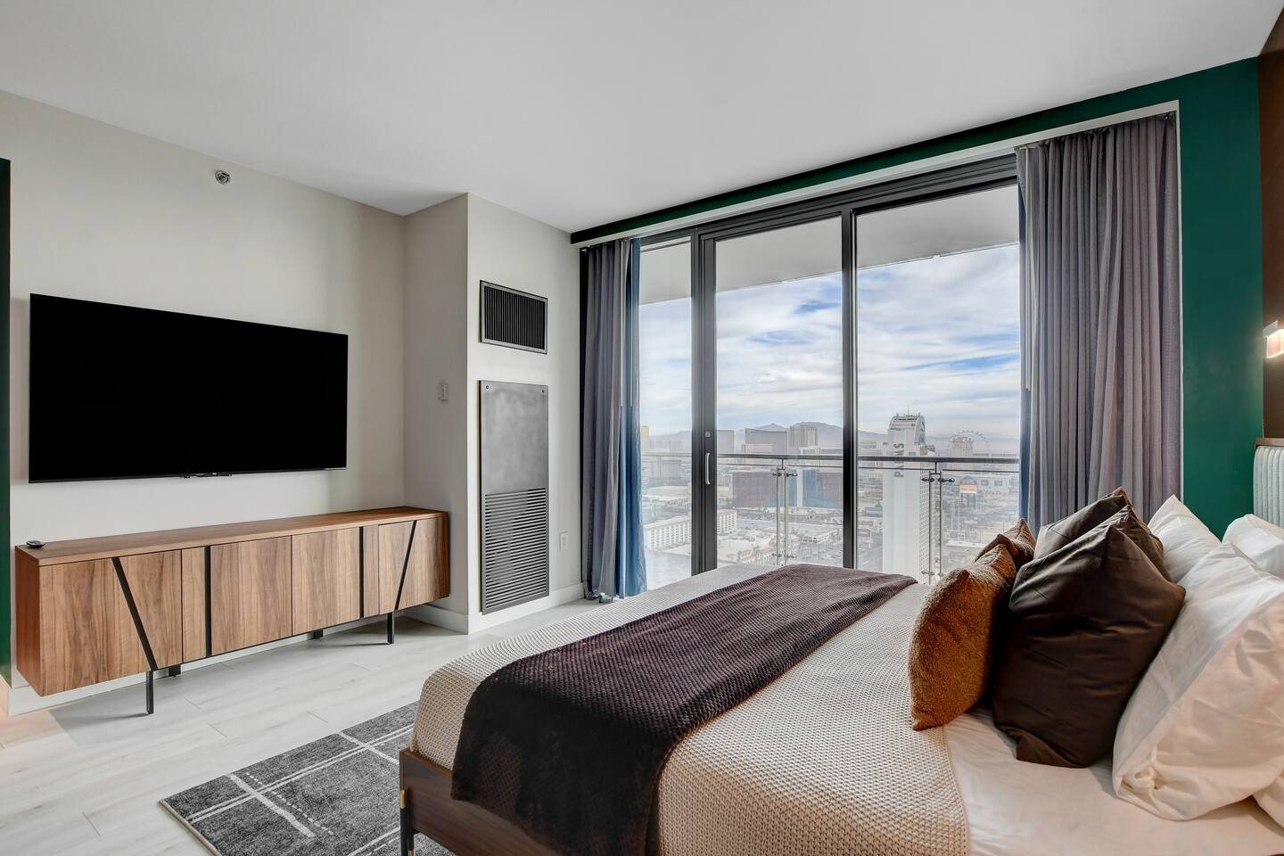 The Ava suite is a thoughtfully designed studio suite nestled on the 37th floor offering a calming zen-like experience with soothing color palette and soft glow ambient lighting. Our place promises a peaceful retreat while allowing you to soak in the lively Las Vegas scene. A perfect blend of relaxation and convenience at Palms Place awaits. Full access to the balcony showcasing breathtaking panoramic Las Vegas strip and city views.