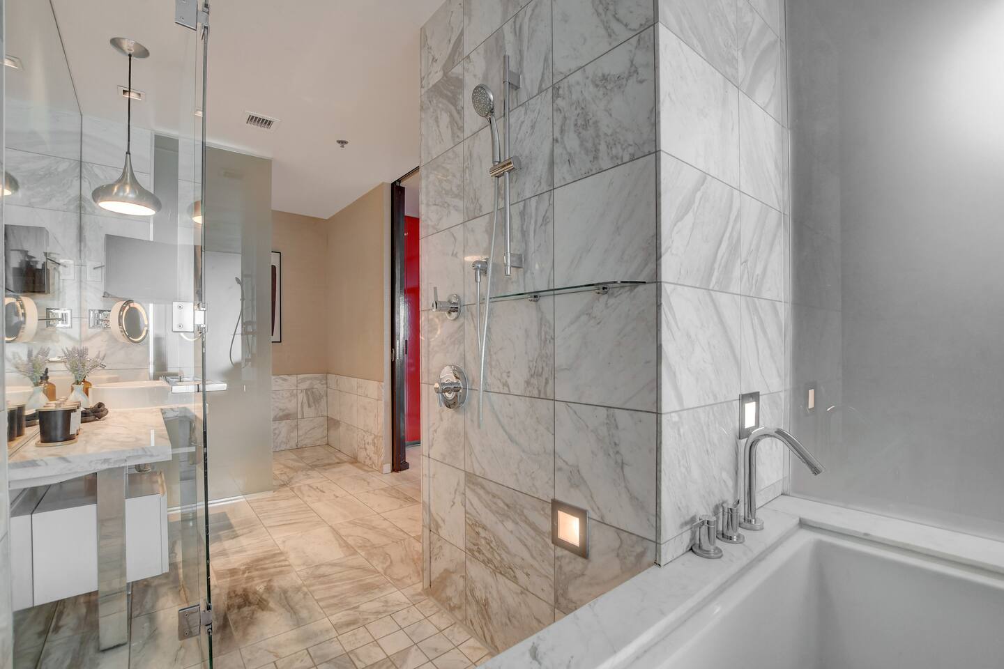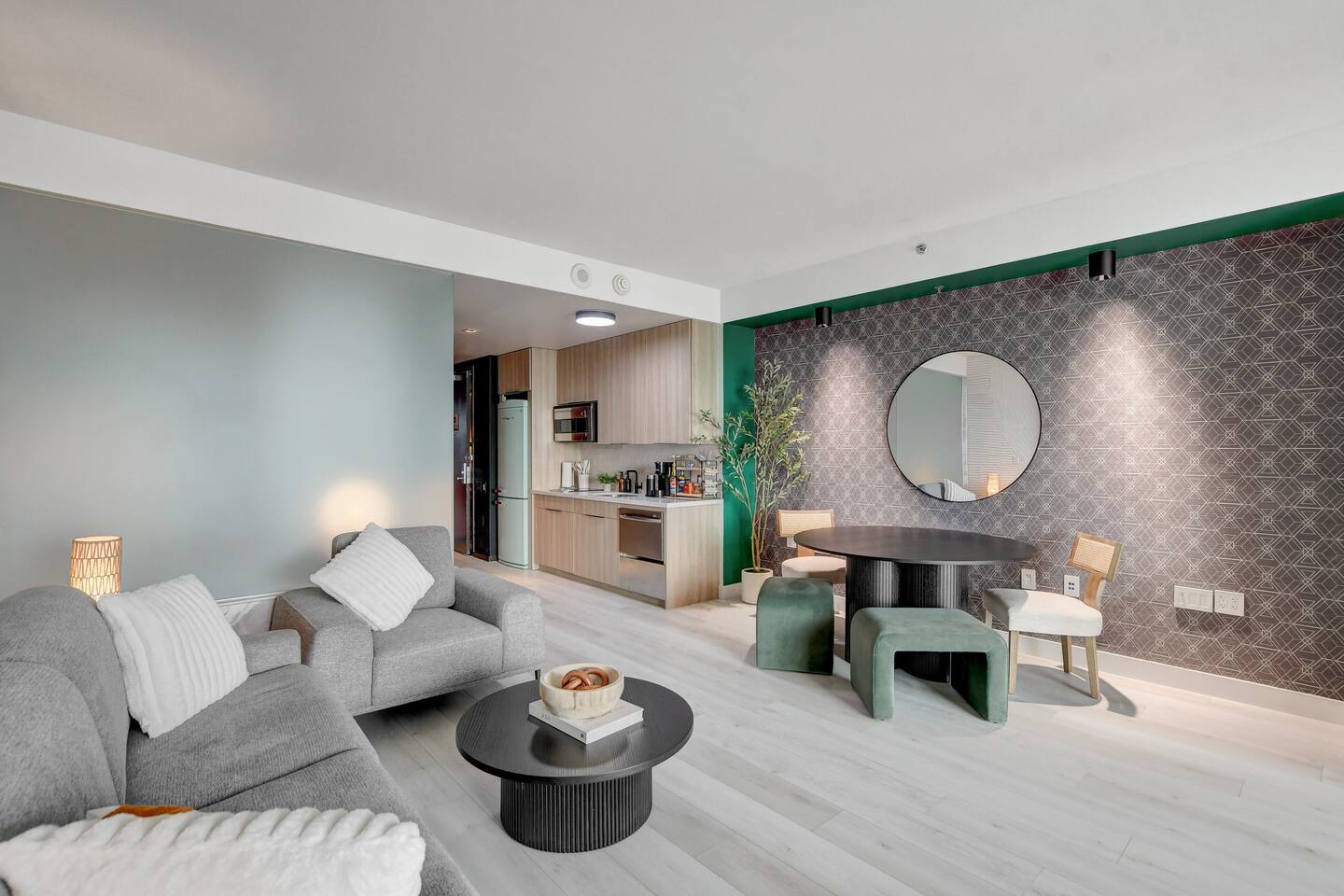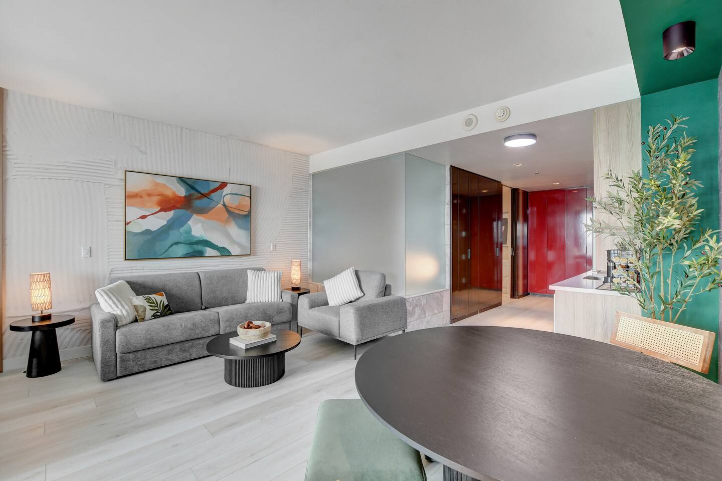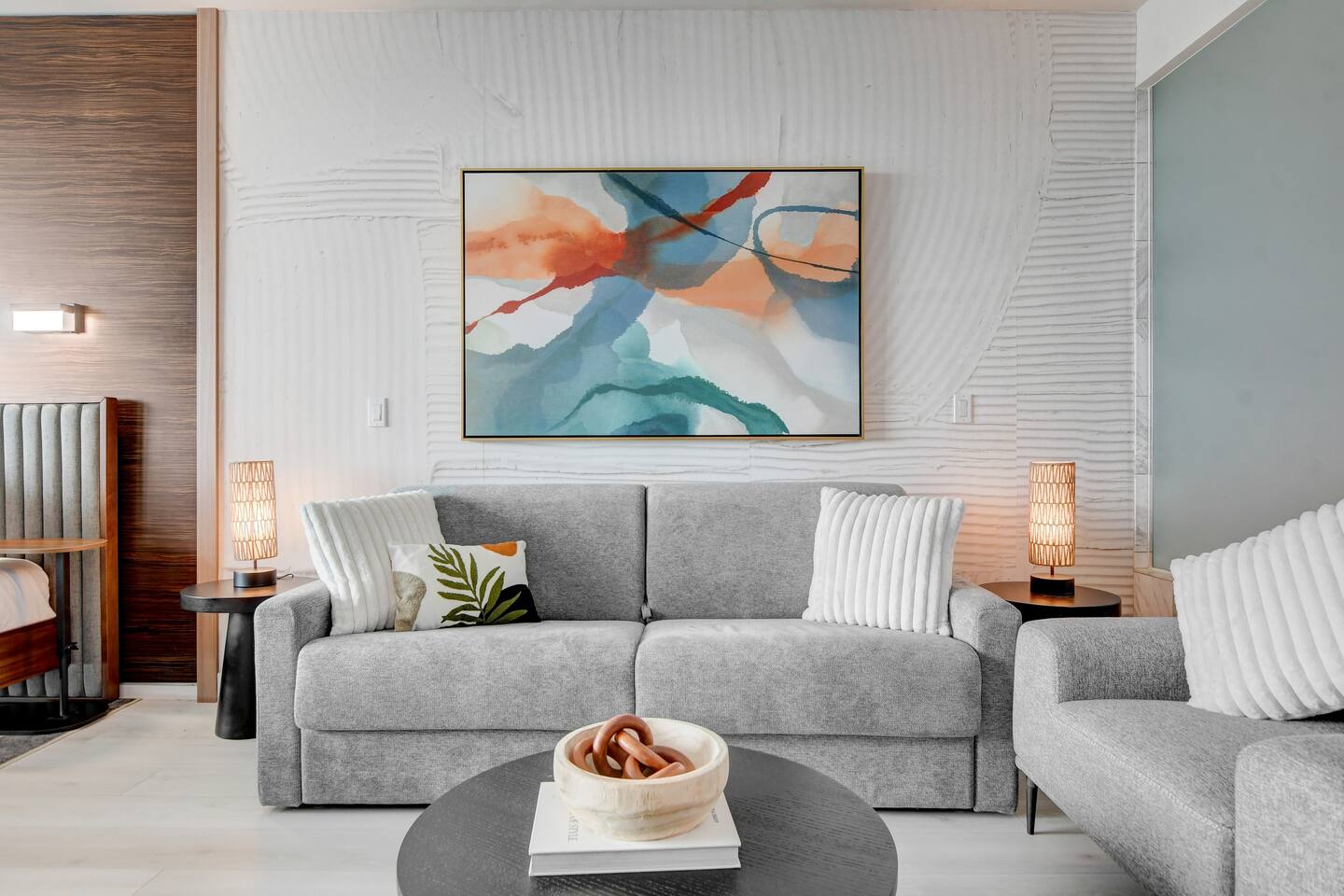 The Ava suite is a thoughtfully designed studio suite nestled on the 37th floor offering a calming zen-like experience with soothing color palette and soft glow ambient lighting. Our place promises a peaceful retreat while allowing you to soak in the lively Las Vegas scene. A perfect blend of relaxation and convenience at Palms Place awaits. Full access to the balcony showcasing breathtaking panoramic Las Vegas strip and city views.