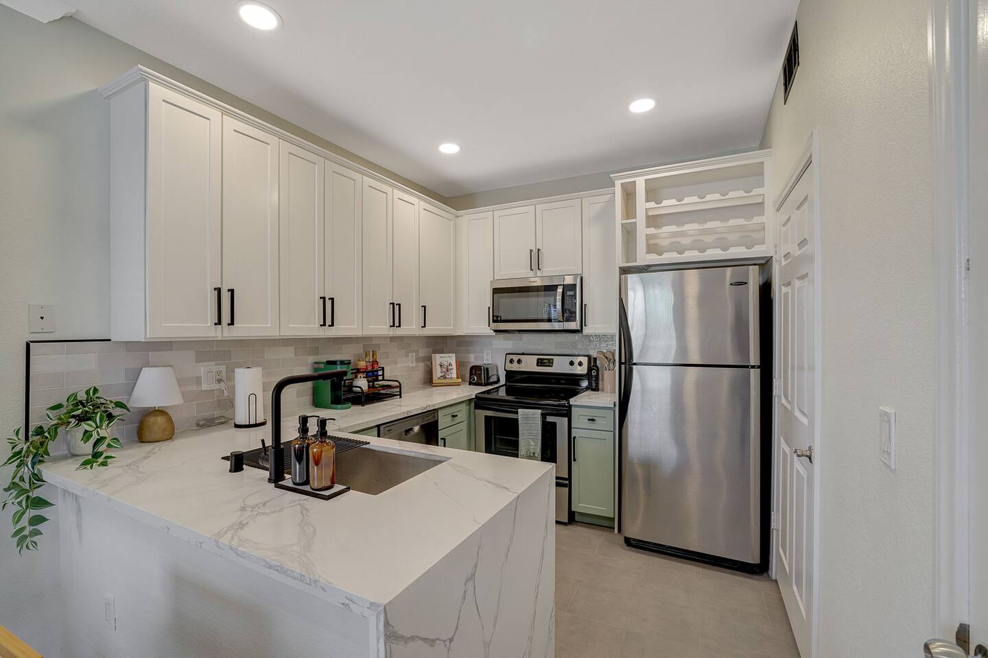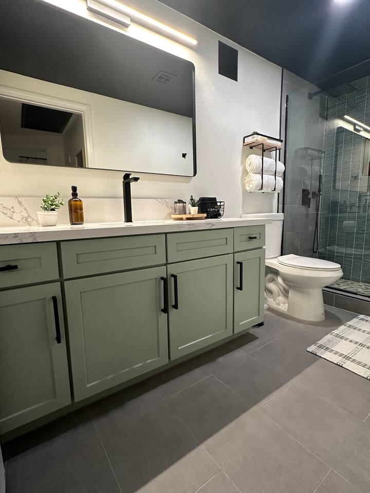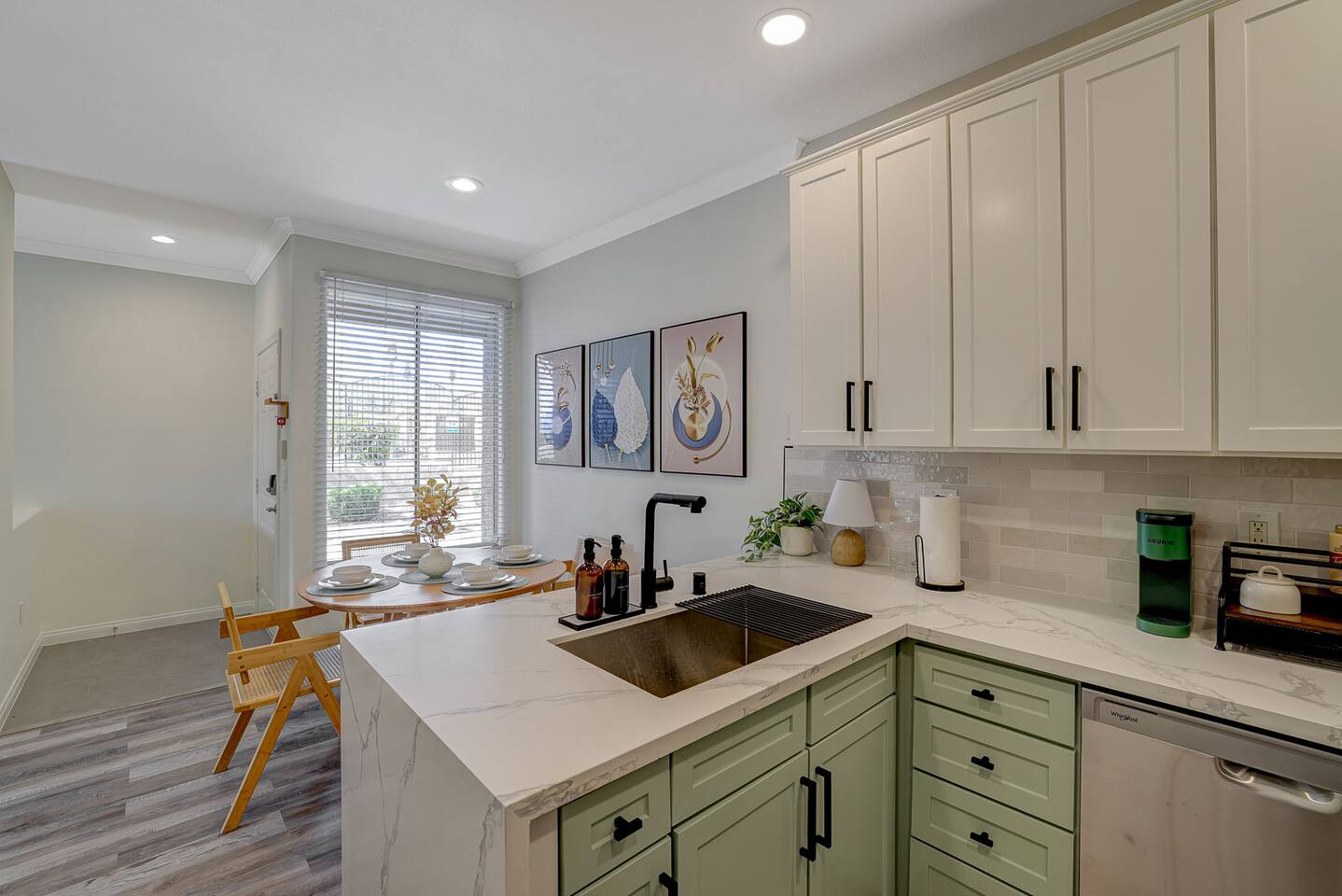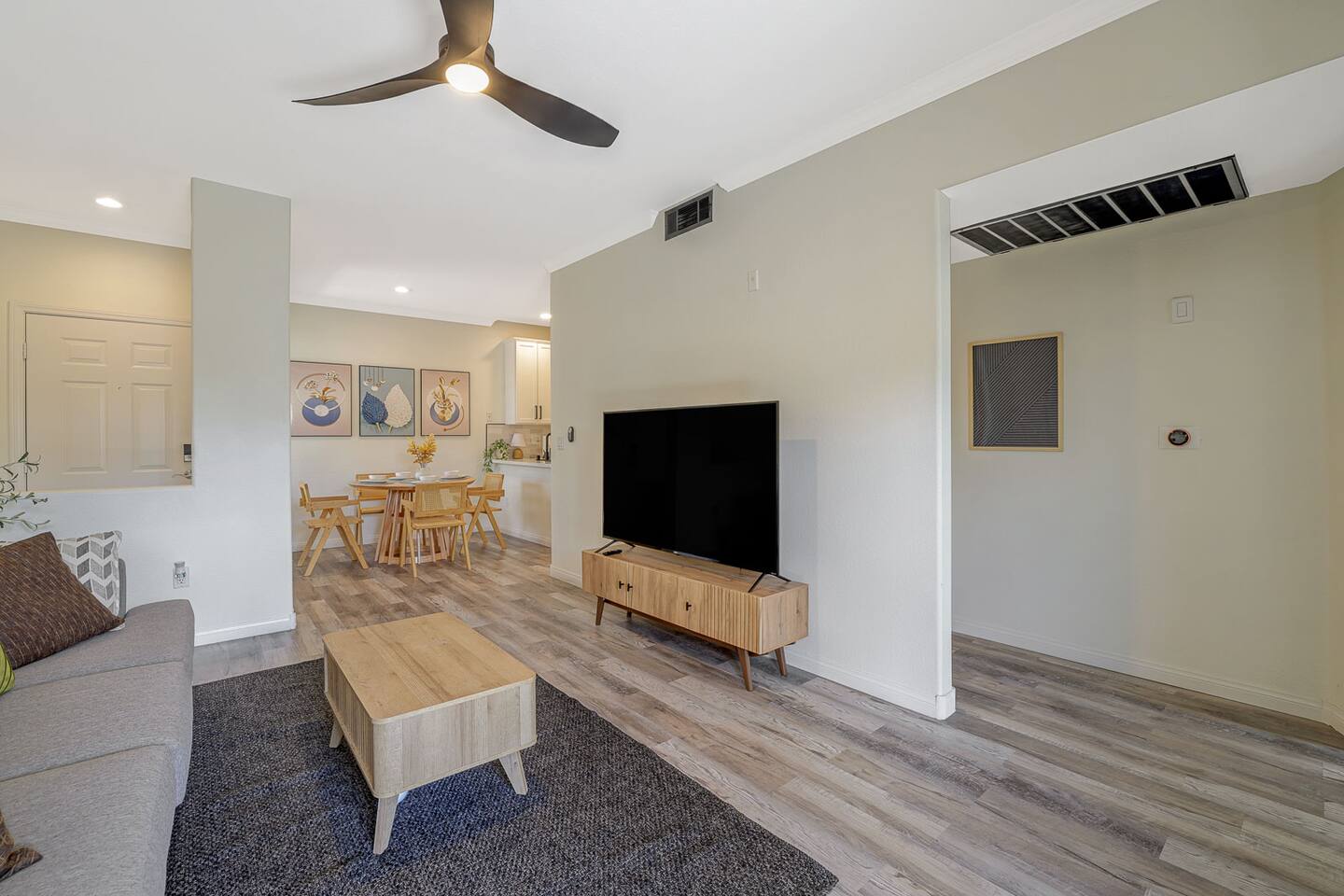Step into the spacious living area, adorned with modern scandanavian design and tasteful decor. Relax on the plush sofa or enjoy a meal at the dining table, illuminated by natural light streaming through large windows. 👩🏻🍳The fully equipped kitchen features sleek quartz countertops and stainless steel appliances, ideal for preparing delicious meals during your stay. ✔️ Coffee machine ✔️ Toaster ✔️ Blender ✔️ Kettle ✔️ Pots and Pans ✔️ Dinnerware and Glassware The tranquil bedroom boasts a comfortable queen-size bed, ensuring a restful night's sleep after a day of exploring Las Vegas. 🛁🚿The adjacent bathroom is elegantly designed and equipped with modern light fixtures, newly renovated walk in shower, and luxury toiletries offering a spa-like experience. Sleeping area: 🛏️ Bedroom - 1 queen size bed 🛋️ Living room - 1 couch