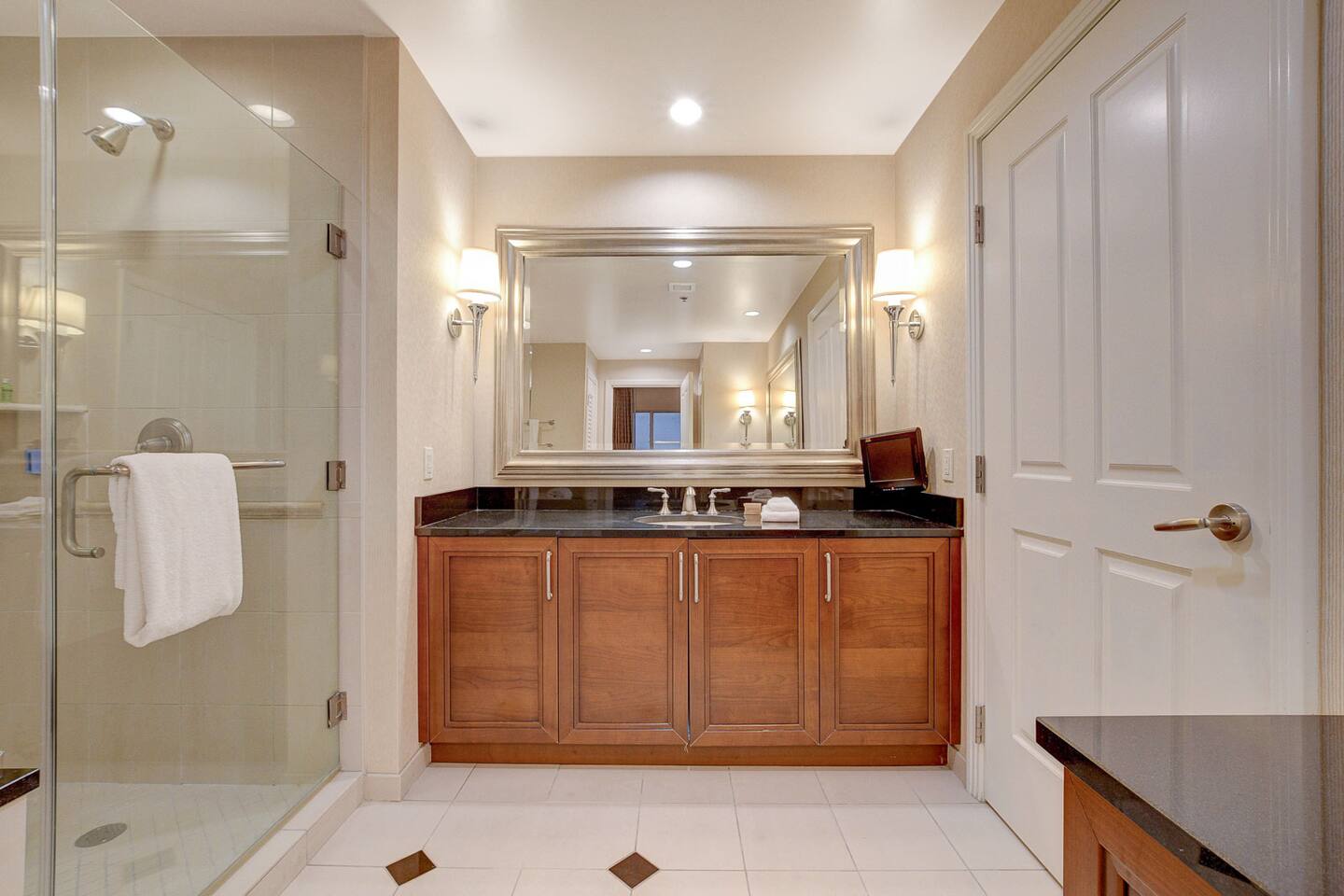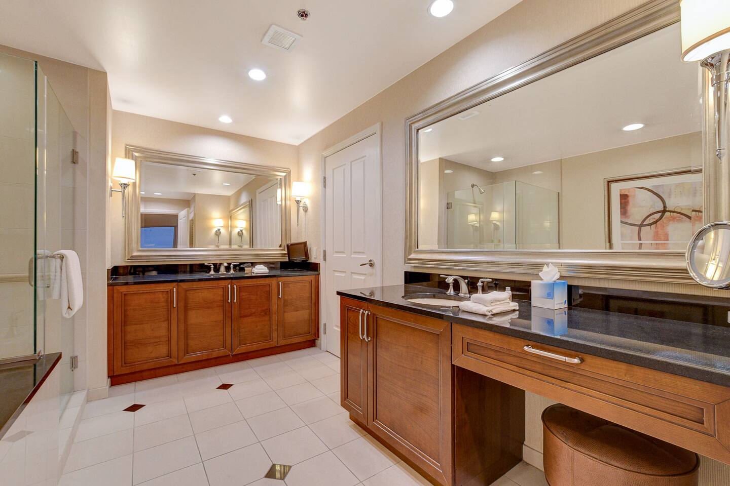 Enjoy a comfortable stay in this 1-bedroom, 2-bath suite at The Signature at MGM. The space includes a king bed, a queen-size sleeper sofa, a full kitchen with quality appliances, and a bathroom with spa-style features. Guests have access to the property’s pools, fitness center, and 24/7 security. Conveniently connected to the MGM Grand and within walking distance of the Strip, it’s a great home base for your Las Vegas trip.