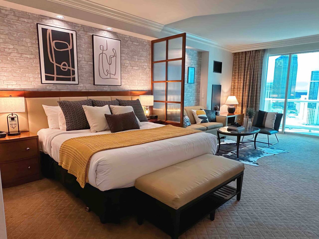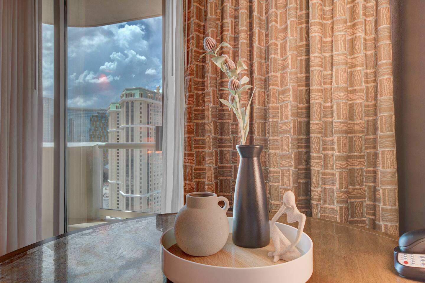 BOOK AN EXPERIENCE ~ HIGH floor studio suite with a balcony offering panoramic views of the LV Strip and formula 1 race track located at the MGM Signature Tower 2. Directly overlooks the pool and courtyard. Complimentary parking and WIFI. No daily resort fee.