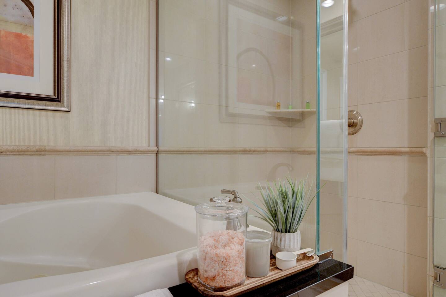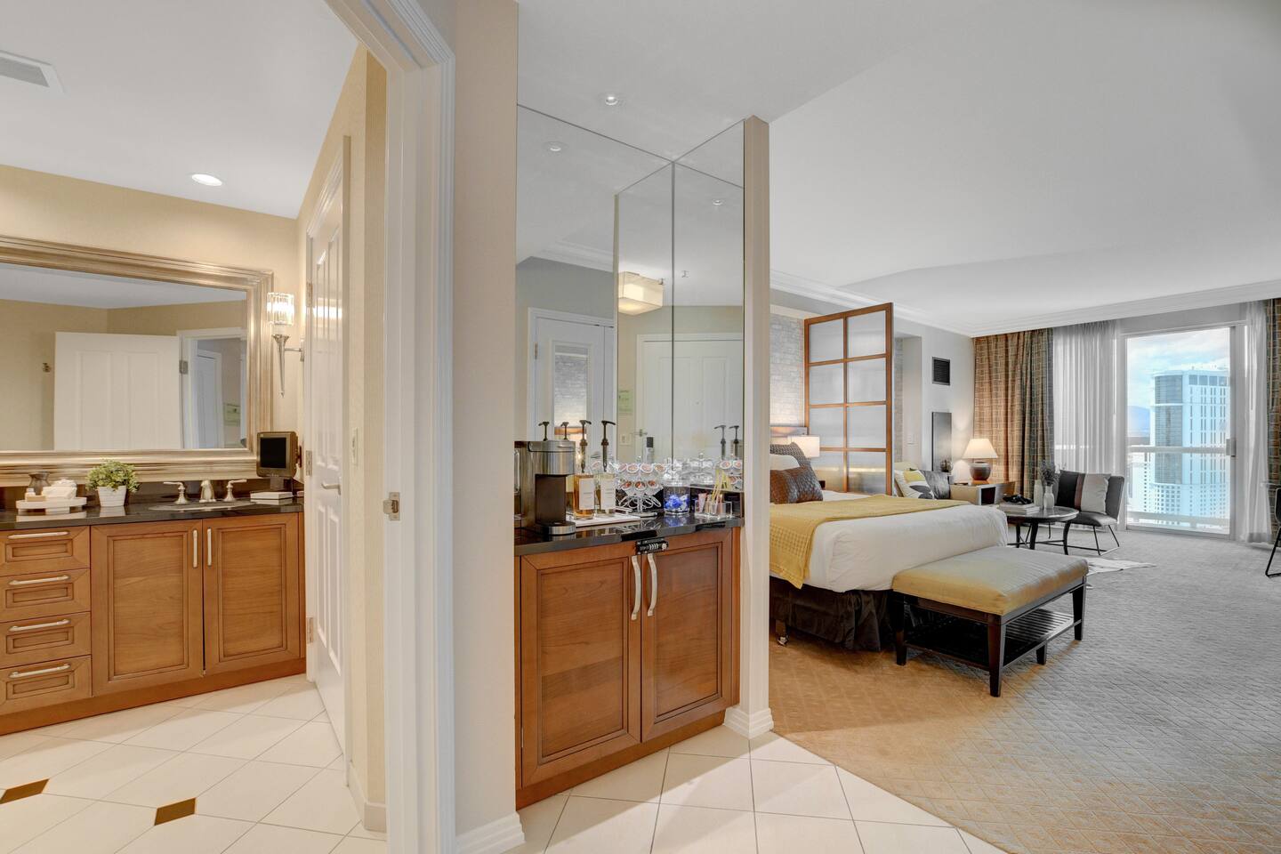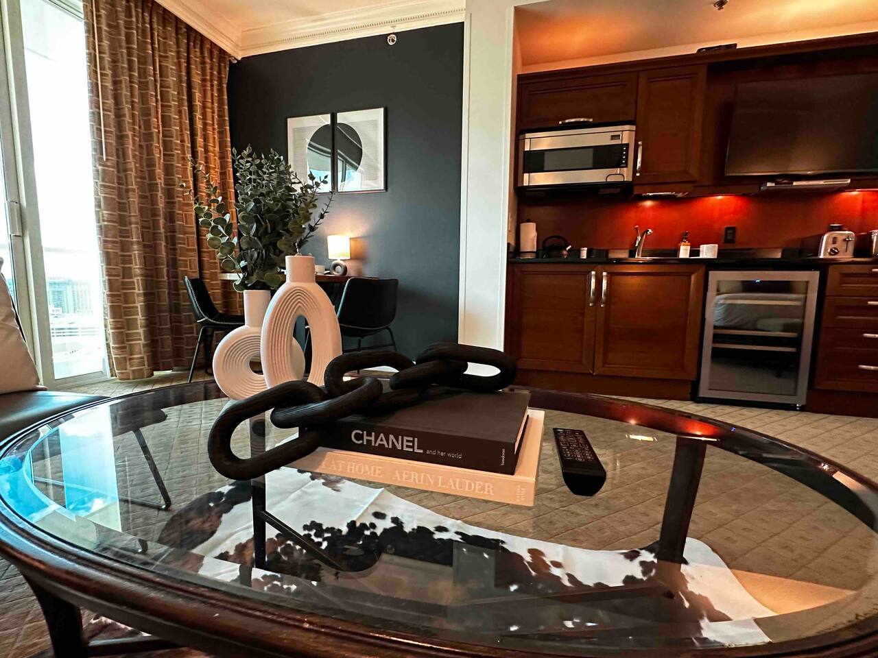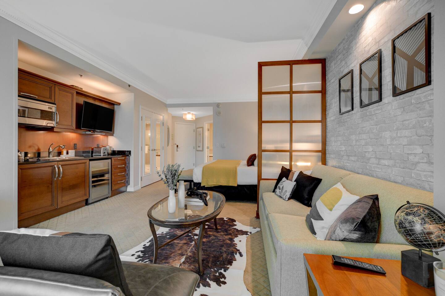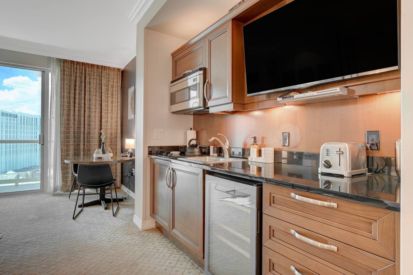 You are booking a unique studio suite that is beautifully furnished that's nothing like any other units within the MGM Signature. It features an edgy design yet still provides pure tranqility of 550 sq footage of living space that showcases heavy influence on contemporary palette with traces of industrial elements. A retreat displaying warmth, comfort and quiet escape. β¨ Amenities include but not limited to: 1 King size bed with a plush luxury mattress 1 Queen size sofa bed in the living room Miele and Bosch fully stocked kitchenette Stainless steel mini fridge and microwave 2 electric burner stovetop Dining table Keurig coffee maker Coffee k-cups and hot tea Dinnerware and utensils Digital safe Comfortable accent chair Workspace/Dining area seating for 2 Iron and Ironing board. Ultra-thin LCD flat-screen, high-definition TV High-speed Internet access with wireless capabilities. The bathroom features dual sinks, a walk in shower and oversized Jacuzzi-brand whirlpool tub. β₯οΈ Book with confidence! Licensed and inspected vacation rental.