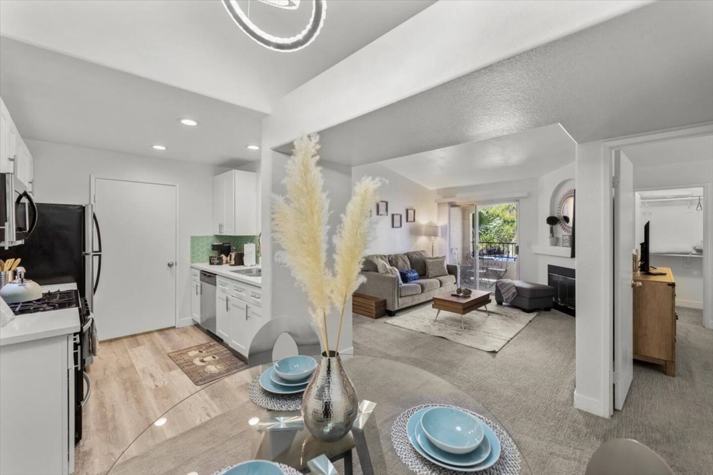 This beautiful and updated 1 bedroom 1 bath condo offers 700sq feet of living space. It is located in a gated community on the 2nd floor. You get 1 assigned covered parking space in front of the building making it an easy and short walk to and from your car. Stainless steel appliances, white quartz countertops, white shaker cabinets and basic cooking essentials are found in the fully functional kitchen. In unit washer and dryer. Complimentary tv streaming to stream free local channels and Roku free shows/tv is included. You would have to sign in with your account for apps such as HULU, Netflix, Peacock, Disney, etc.