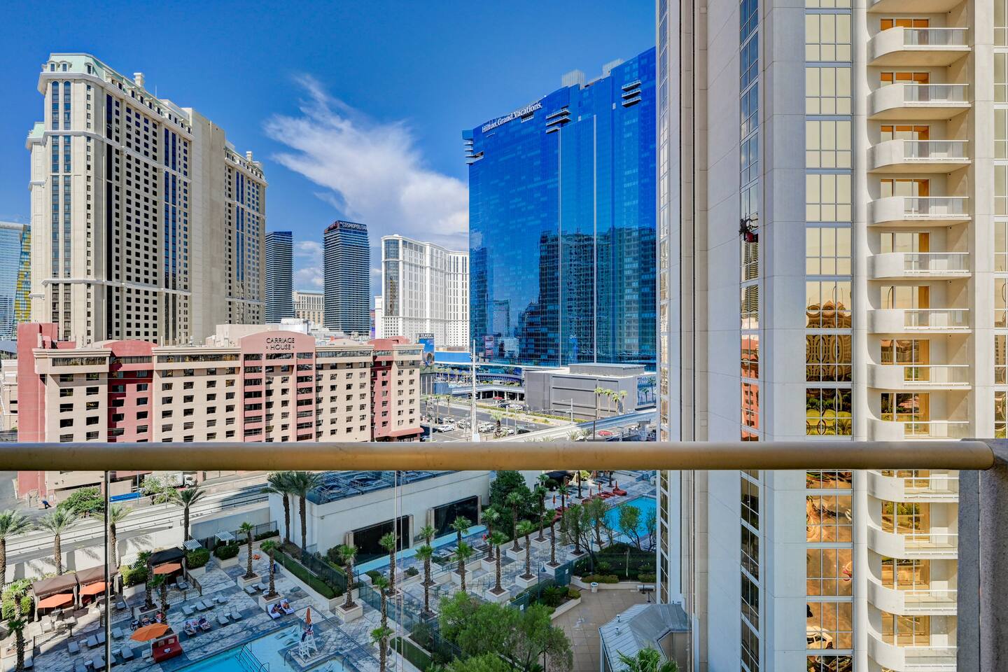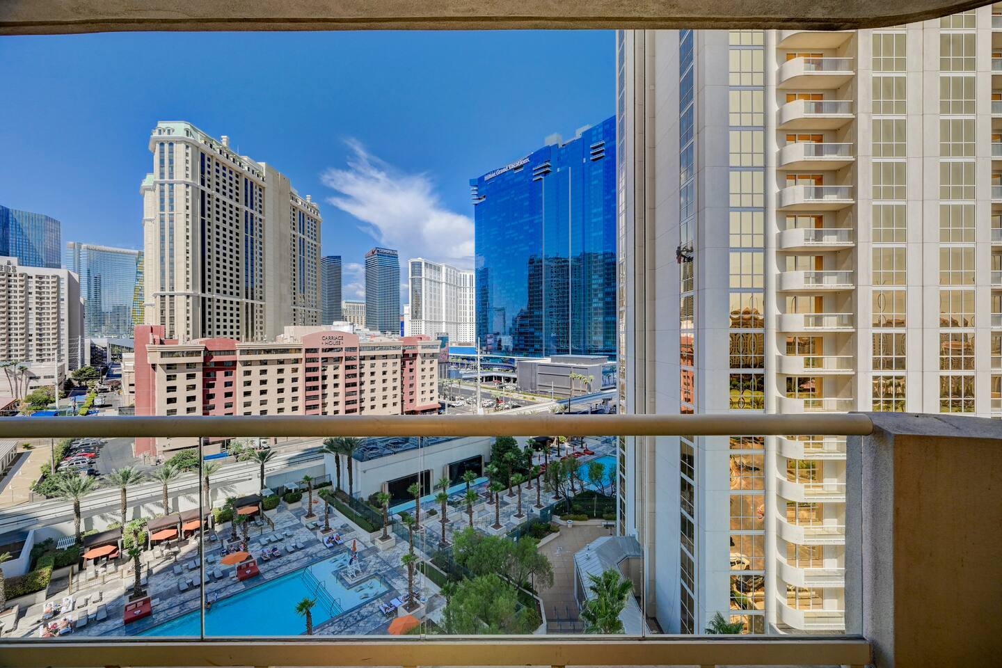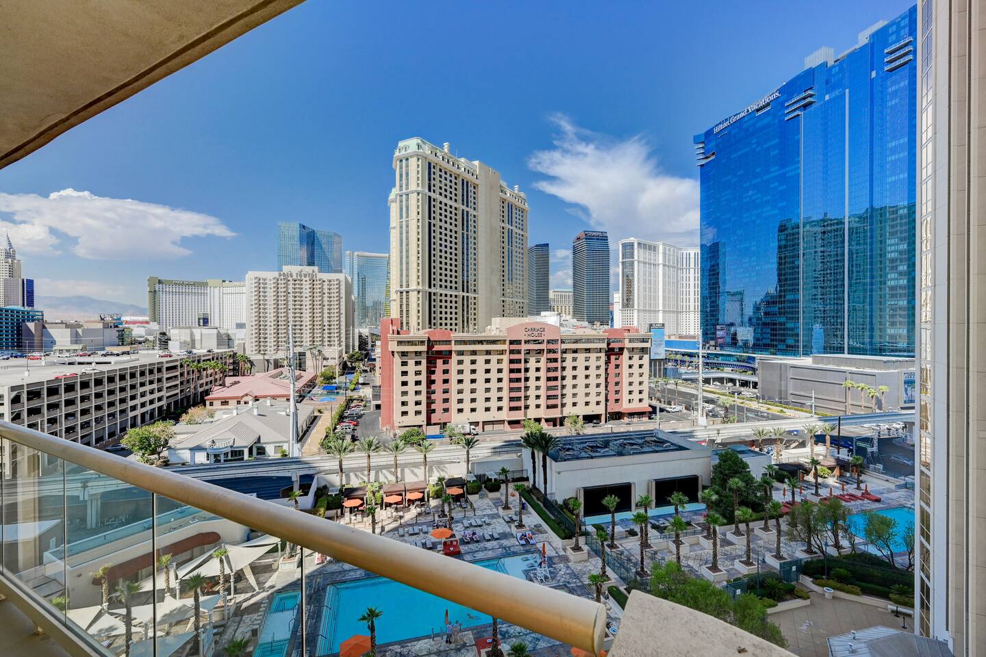 Step into a beautifully designed studio that combines modern aesthetics with cozy touches. The open-plan layout features a plush bed, a stylish seating area, and a private balcony that offers unrivaled views of the dazzling Las Vegas Strip and our sparkling pool. 🍽️ Kitchenette: Whether you’re a culinary enthusiast or just looking to prepare a quick snack, our well-equipped kitchenette has you covered. It includes: Mini-fridge for all your essentials Microwave for easy heating Stovetop for cooking up your favorite dishes Essential cookware and utensils 🛁 Bathroom Bliss: Pamper yourself in the luxurious bathroom featuring: An oversized tub perfect for a relaxing soak A separate, spacious shower for a refreshing start to your day High-quality toiletries and plush towels 🌅 Private Balcony: Your private balcony is a true highlight, offering: Gorgeous, unobstructed views of the vibrant Las Vegas Strip Panoramic sights of our pristine pool area Comfortable seating to enjoy your morning coffee or evening cocktail 📺 Entertainment & Comfort: Flat-screen TV with streaming capabilities for your entertainment Free Wi-Fi to stay connected Air conditioning to keep you cool and comfortable 🏊♂️ On-Site Amenities: Enjoy access to the property’s amenities, including: 3 sparkling outdoor pools – perfect for a dip or lounging under the sun On-site parking for your convenience (availability may vary) 📍 Location Perks: Located in the heart of Las Vegas, you’re just moments away from: Iconic casinos and luxury resorts World-renowned restaurants and vibrant nightlife Premier entertainment venues and shopping ✨ Why You’ll Love It: Stylish Comfort: The studio’s modern design and thoughtful amenities ensure a stay that’s as relaxing as it is enjoyable. Incredible Views: Whether you're taking in the city lights at night or enjoying the poolside scenery during the day, the views are spectacular. Convenience: With easy access to all the best that Las Vegas has to offer, you’ll spend less time traveling and more time enjoying your vacation. 📅 Ready to Book? Don’t miss out on this exceptional stay in Las Vegas! Click to reserve your dates and get ready for an unforgettable experience. Whether you’re here for a special occasion, a romantic escape, or a solo adventure, our studio suite is your perfect home away from home. 📣Design of the room may vary from photos shown as we place guests into rooms based on availability with similar features and amenity. We look forward to hosting you and making your Vegas trip truly memorable!