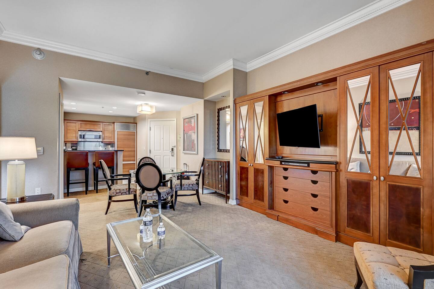 ✨This sophisticated 1 BR 2 BTH at MGM Signature offers a peaceful retreat in the heart of Las Vegas. Take advantage of exclusive access to world-class amenities while indulging in the luxury of a private getaway. ♥️ Unit features: 🔸1 King bed 🔸1 Queen sofa bed 🔸1 coffee table 🔸2 nightstands 🔸Walk in closet 🔸Full sized refrigerator 🔸 4 burner electric stove 🔸 Microwave 🔸 Oven 🔸 2 Full size bathroom w/separate tub and shower and another bathroom with a walk in shower 🔸 Dual sink 🔸 Bar countertop w/2 bar stools 🔸 Dining table 🔸 4 dining chairs 🔸 Ironing board and iron 🔸 Full access to the balcony