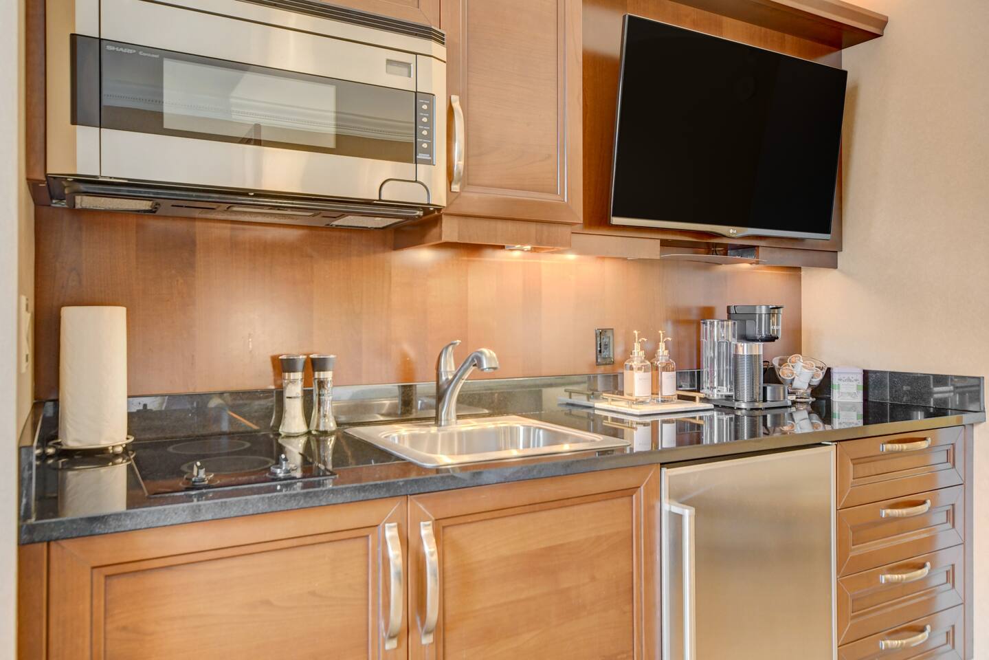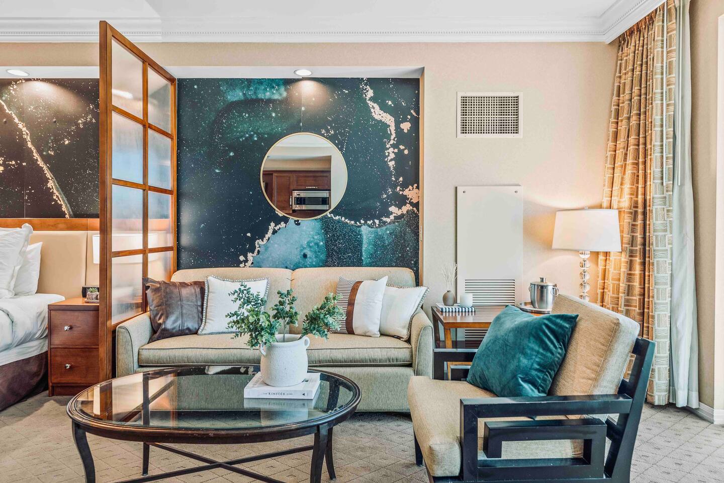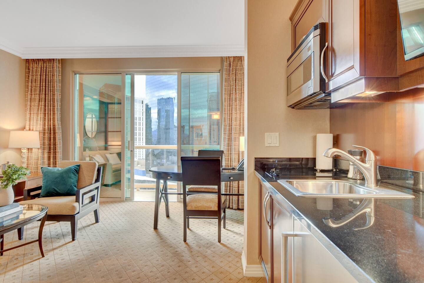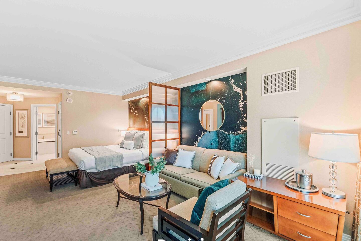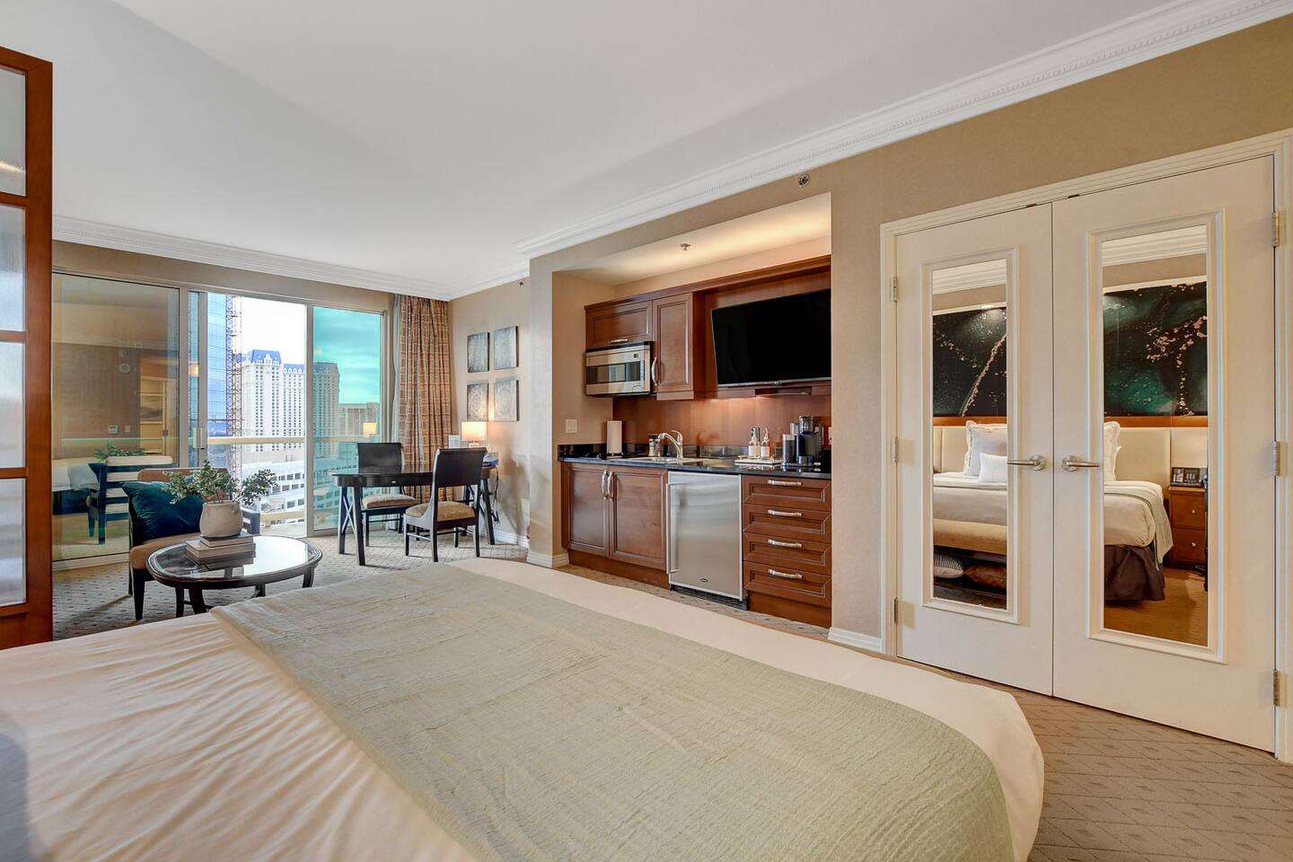 An Elevated Las Vegas Experience! You are booking a beautiful studio suite that is nothing like any other units within the MGM Signature. It features a total of 550 sq footage of living space that is is tastefully furnished with plush fabrics, custom furnishings and a palette of rich colors creating a sense of warmth, vibrancy, comfort and quiet escape. Amenities include but not limited to: 1 King size bed with a plush luxury mattress 1 Queen size sofa bed in the living room Miele and Bosch fully stocked kitchenette Stainless steel mini fridge and microwave 2 electric burner stovetop Dining table Keurig coffee maker Starbucks k-cups and hot tea Dinnerware and utensils Digital safe Comfortable accent chair Workspace/Dining area seating for 2 Iron and Ironing board. Ultra-thin LCD flat-screen, high-definition TV High-speed Internet access with wireless capabilities. The bathroom features dual sinks, a walk in shower and oversized Jacuzzi-brand whirlpool tub. ♥️ Book with confidence! We are a legally permitted Airbnb property with an active (1.) NV business license and (2.) Clark County vacation rental permit. Clark county Clark County Department of Fire and Prevention inspected and approved.