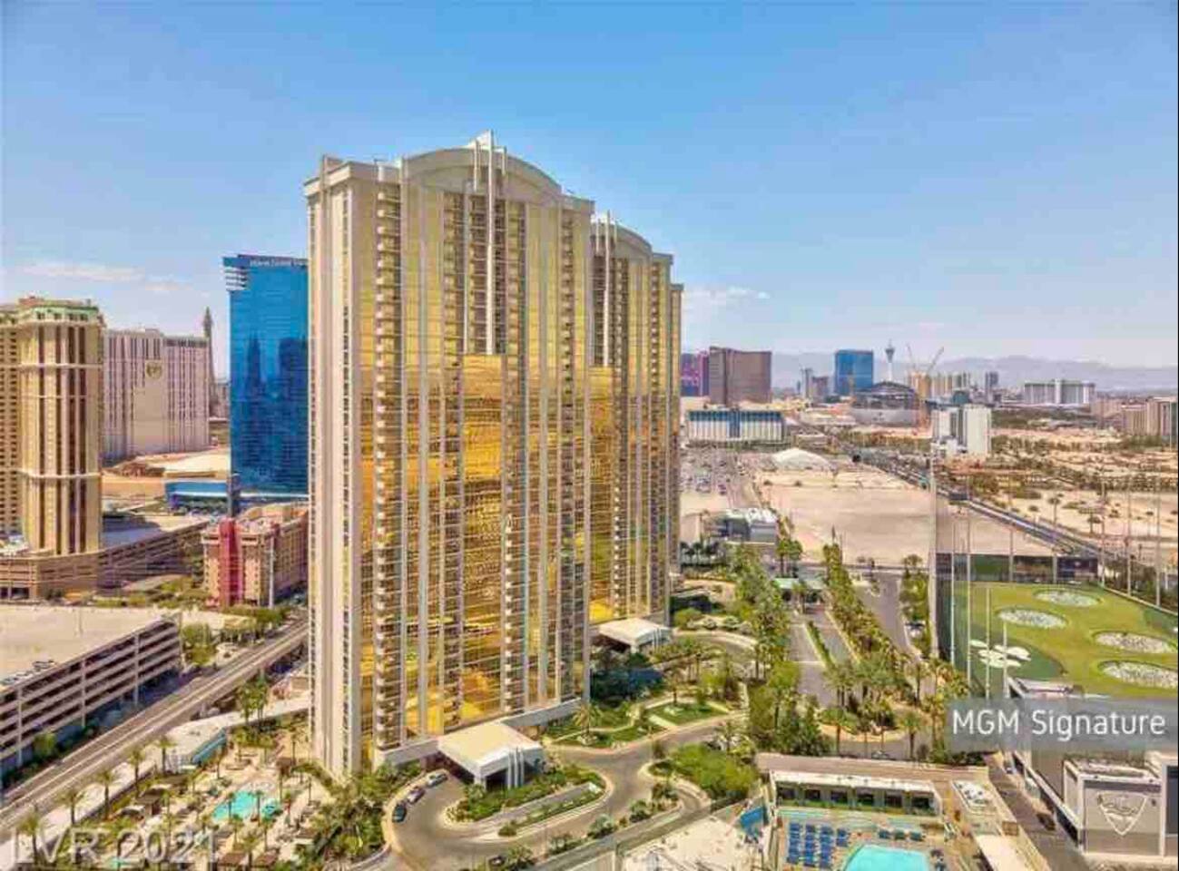 Premium Strip View Suite ~ This beautiful studio suite with a balcony is located at the non smoking and non-gaming MGM Signature Tower 3. It offers breathtaking views of the Las Vegas strip, the upcoming MSG sphere, and Formula 1 race track. Directly overlooks the pool and courtyard.