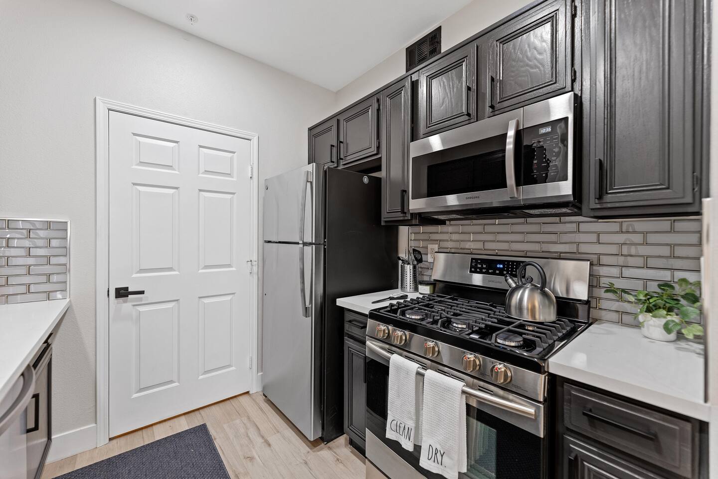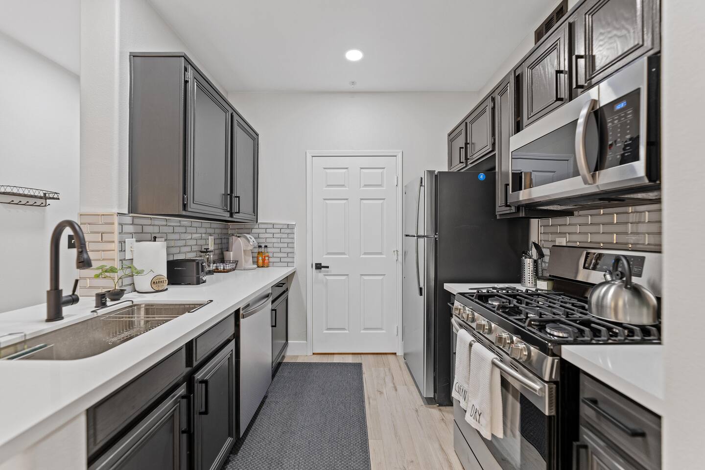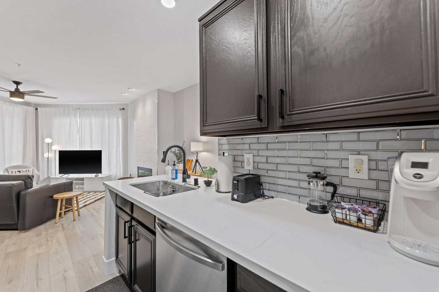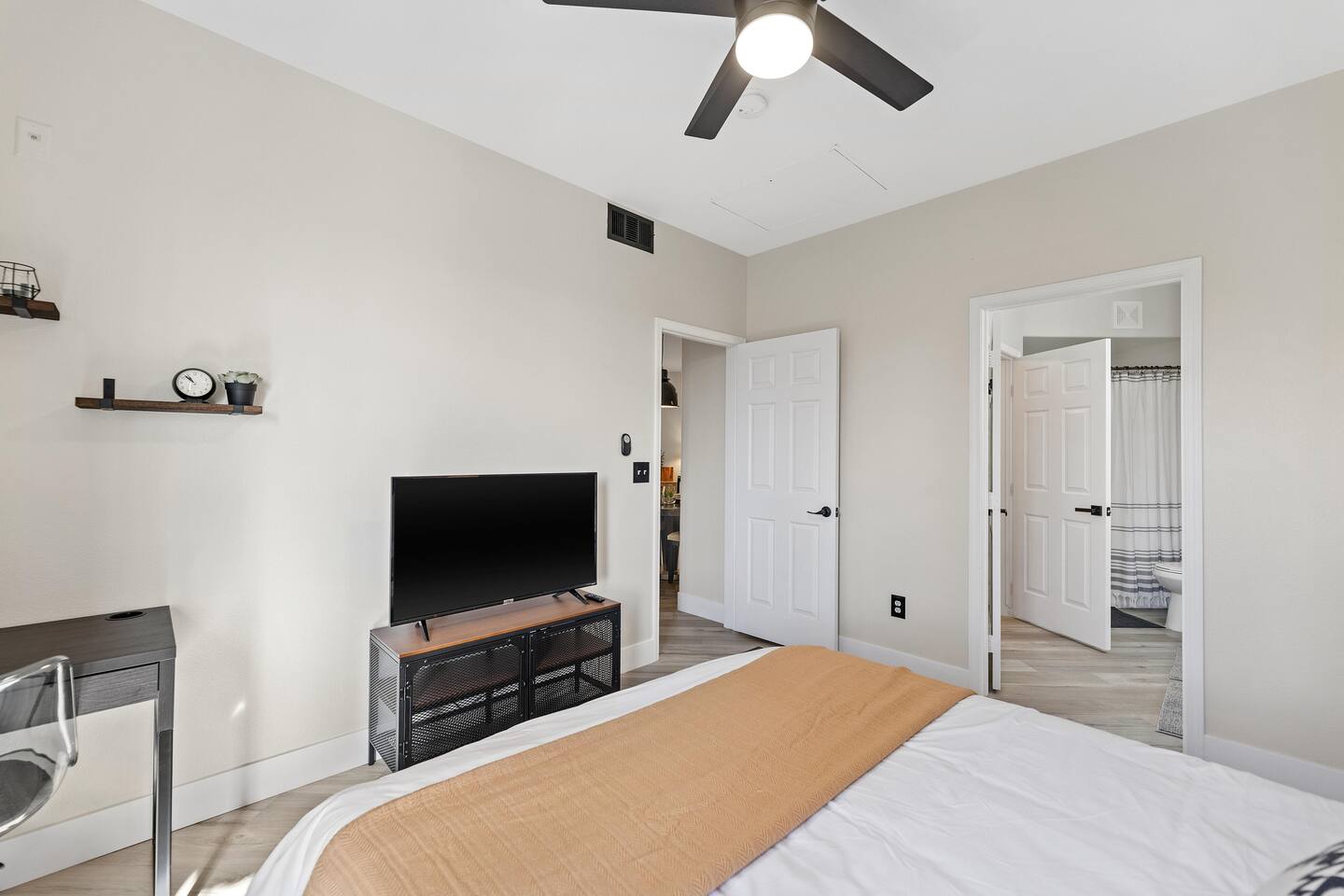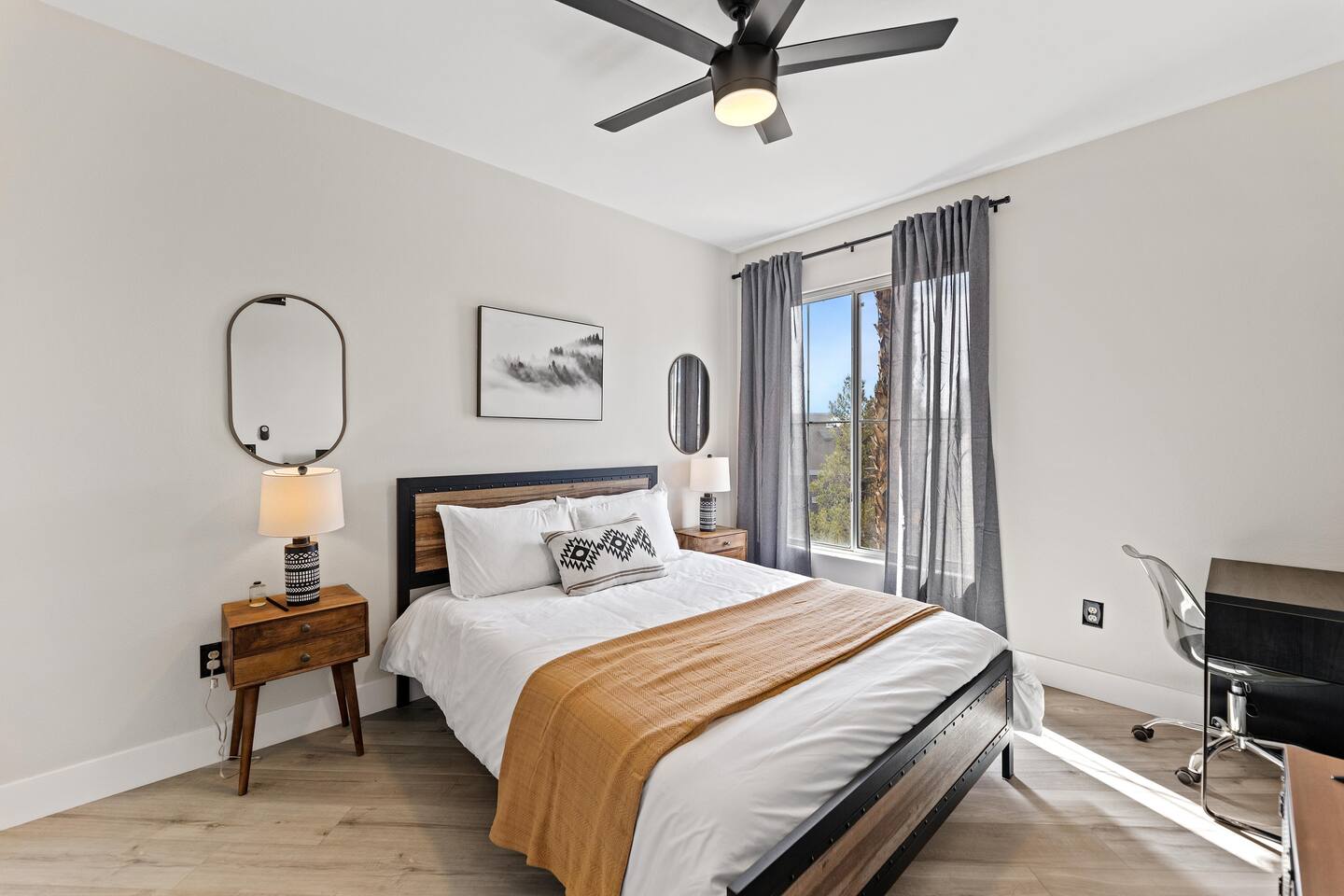🔥Rare find. Always booked on Airbnb and VRBO. This is a private 1 bed 1 bath condo located in a gated community in the heart of Southwest Las Vegas. It is centrally located just 10 minutes from the Las Vegas Strip and steps away from the new shopping center The Uncommons and Durango casino. It is a walking distance to restaurants, banks, Ikea, grocery stores, and shops. We are a short driving distance to hospitals, Raiders Stadium, T-mobile arena, and convention center. It furnished with a queen size bed with a memory foam mattress. The living area features an open floor plan concept with abundant natural light all throughout. It has a comfortable oversized sofa bed, 55-inch flat screen LED tv hooked up with Roku allowing you to stream local channels on the Sling TV, Netflix, Hulu app and more. The kitchen is equipped with stainless steel appliances, Keurig, toaster, and basic essentials you will need when you decide you want to prepare your own home-cooked meals. A private laundry area with a full sized washer and dryer is accessible in the unit. Complimentary Wifi is also available. We are a short walking distance to the clubhouse, swimming pool, hot tub, and fitnesscenter. You will also have your own assigned covered parking.